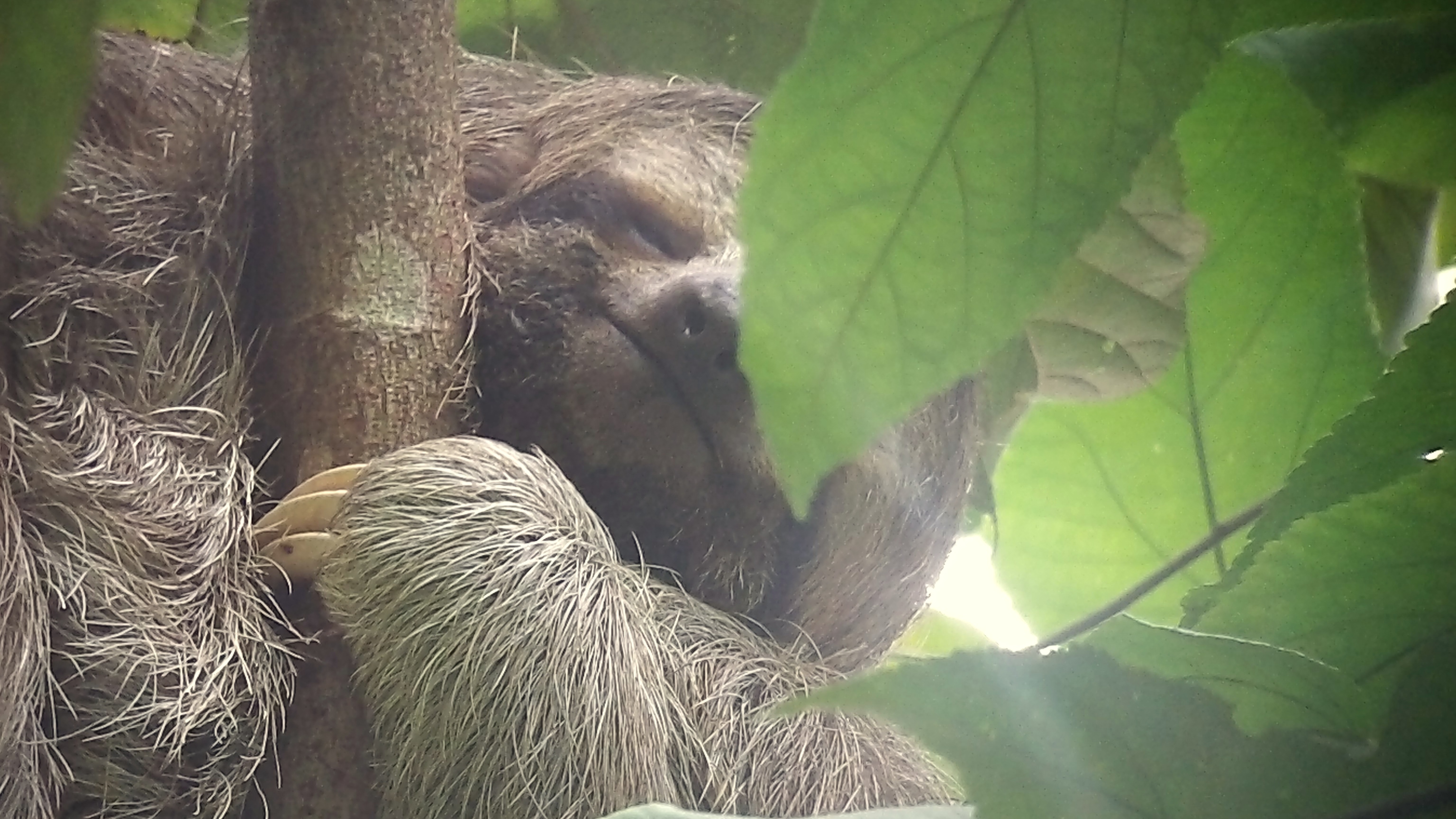 As we arrived, we spotted a sloth in a nearby tree and got a fantastic glimpse of the sloth’s jovial face through the observation scope the staff had set up.