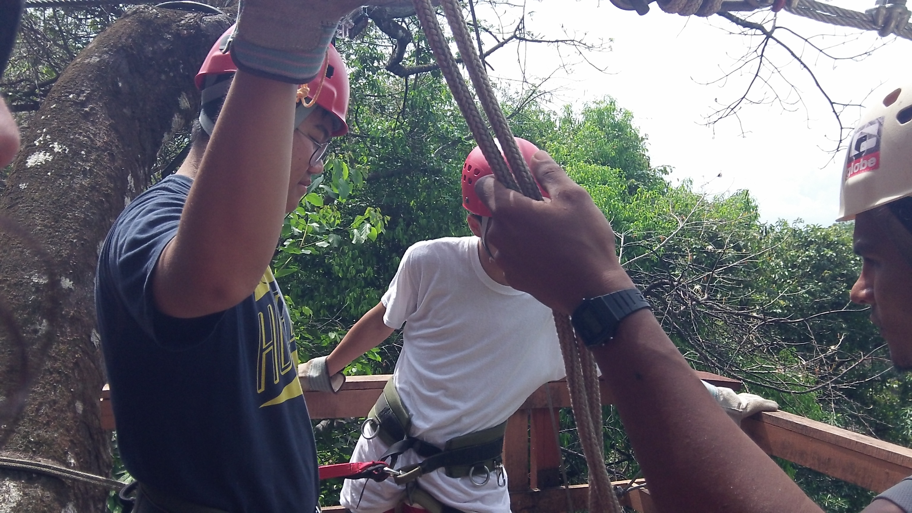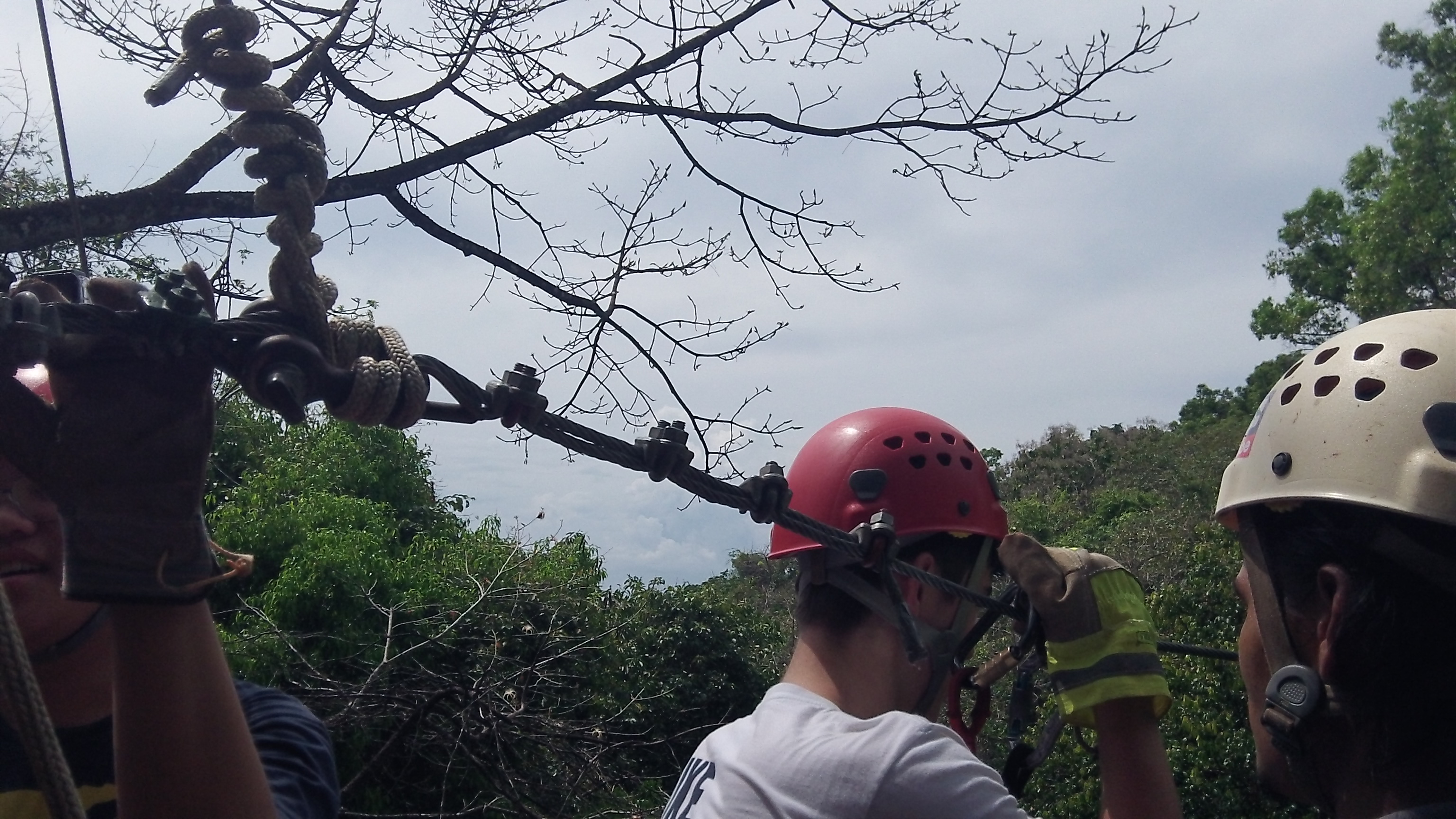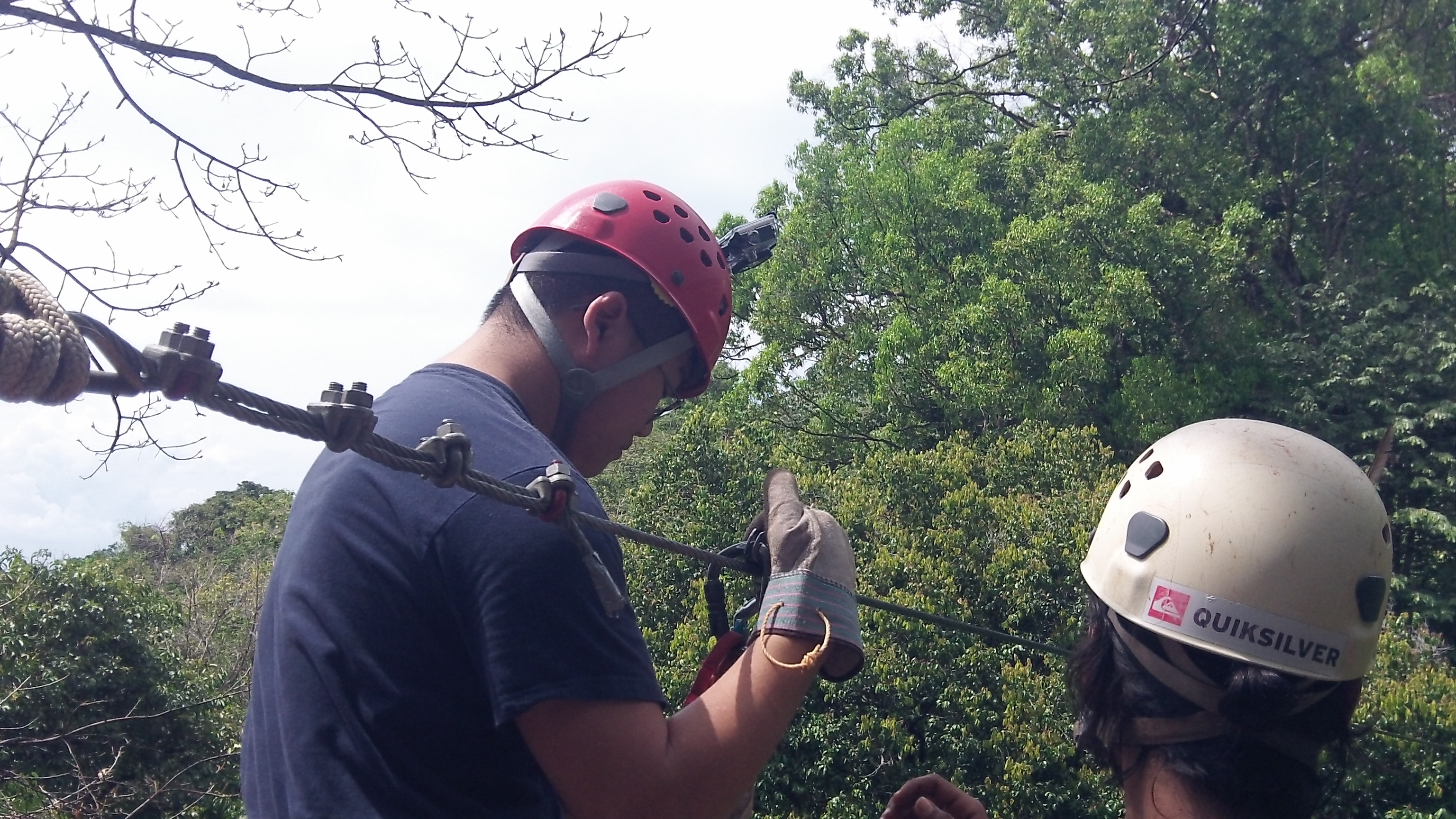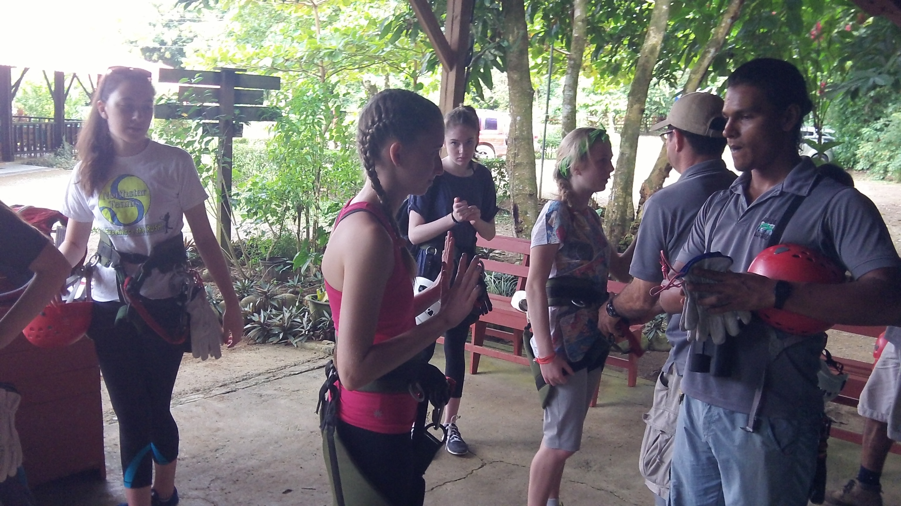 Then it was off to put on our harness and other gear for an educational zip through the canopy’s 8 lines, making our way through the rainforest of chocolate trees (cacao) and amazing wildlife.