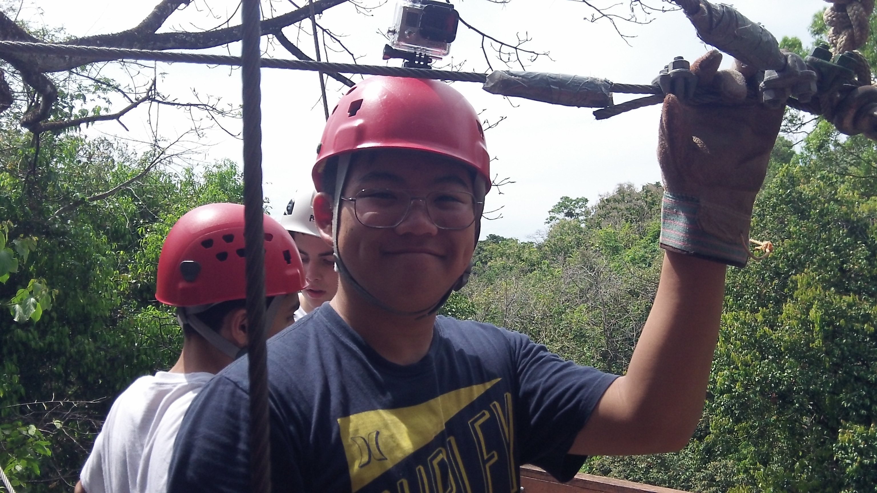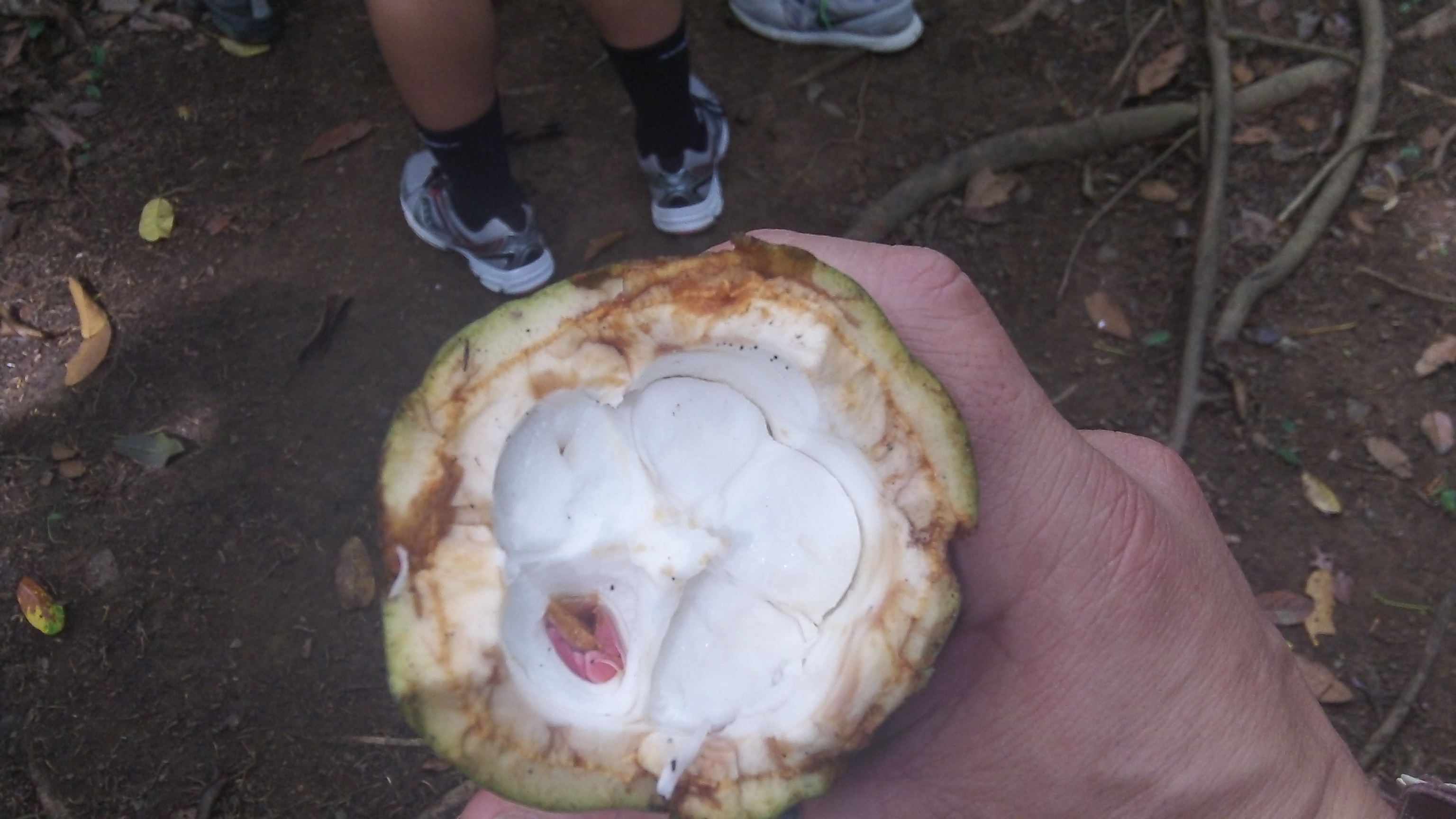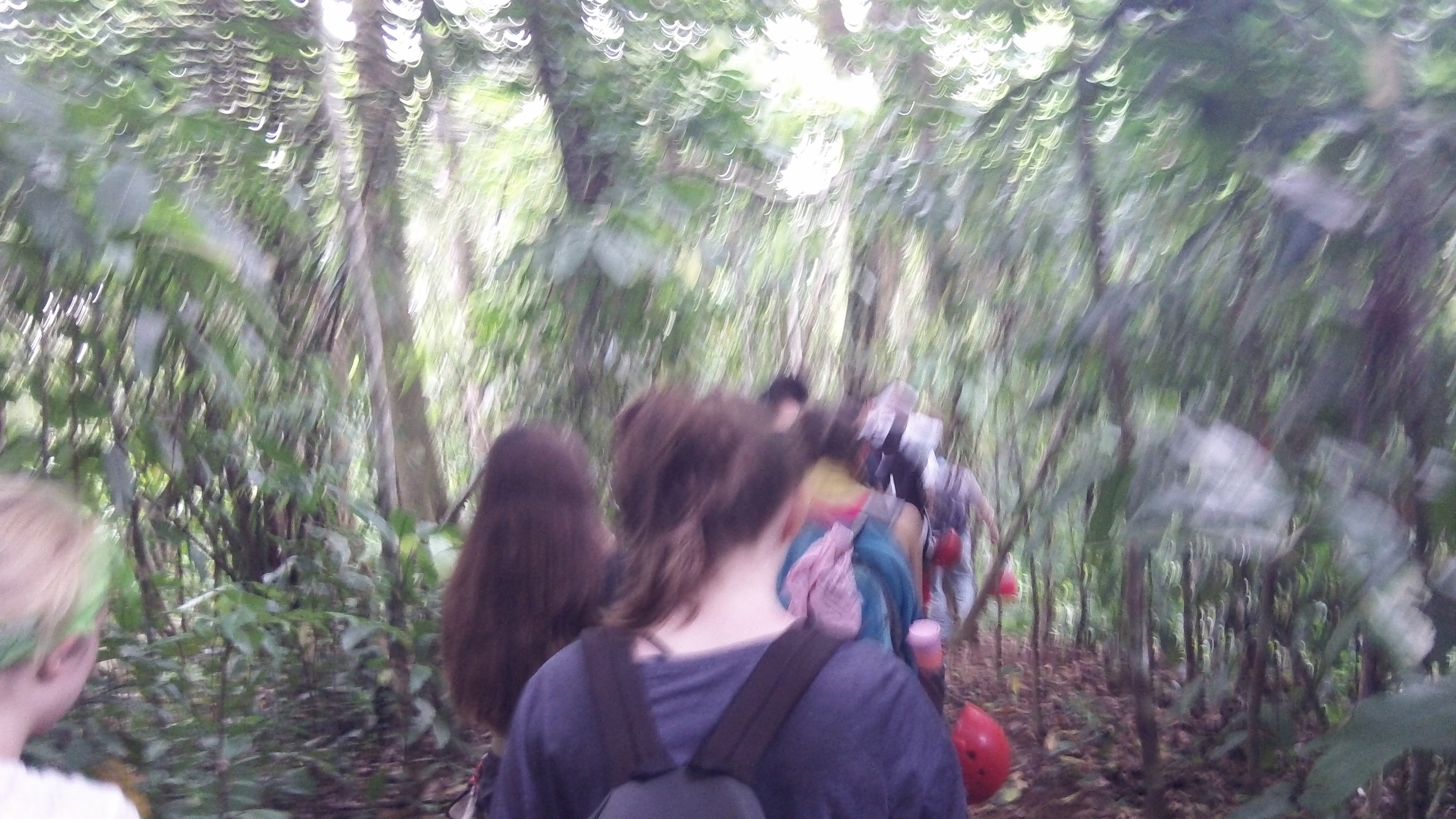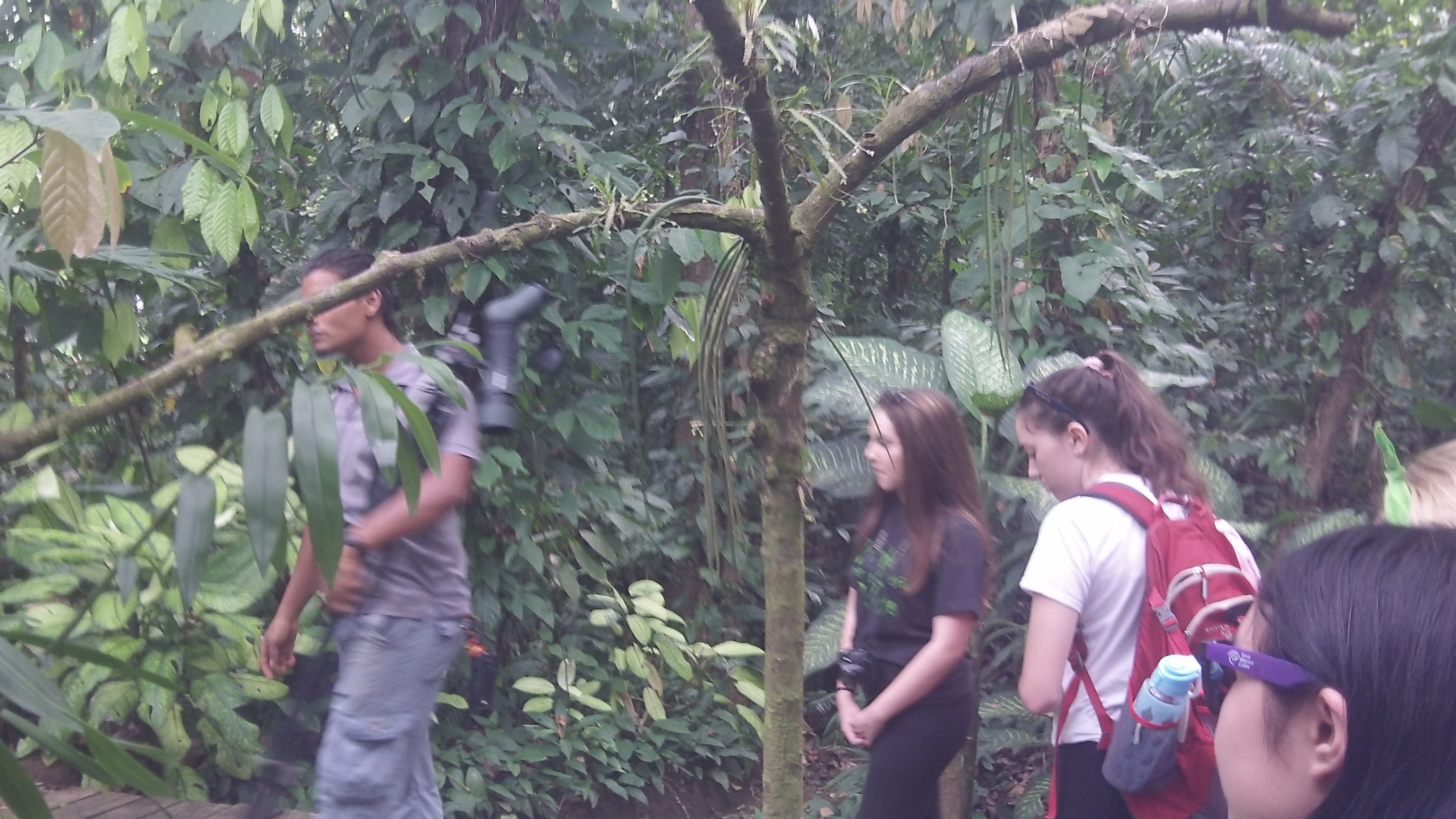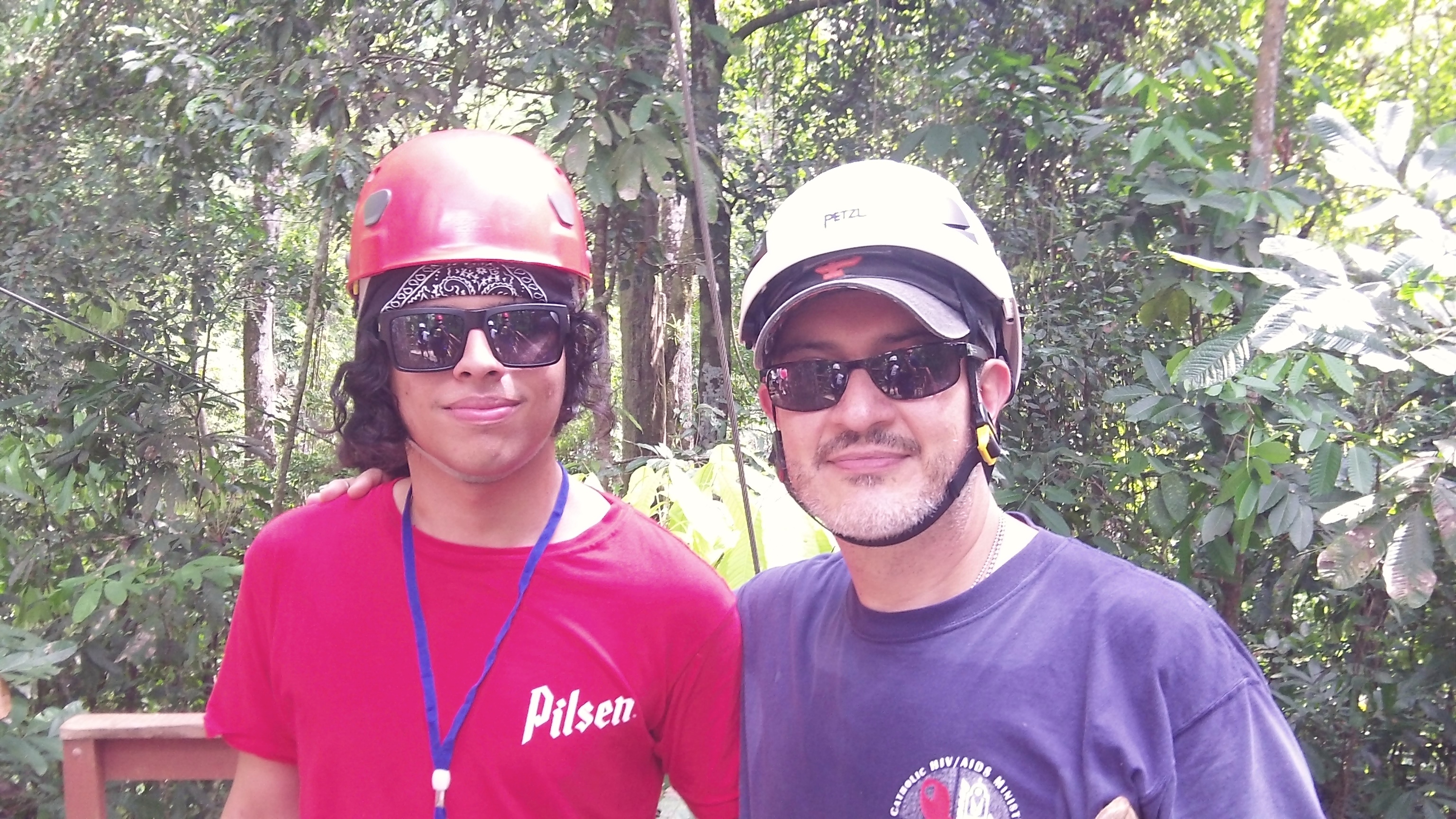 Then it was off to put on our harness and other gear for an educational zip through the canopy’s 8 lines, making our way through the rainforest of chocolate trees (cacao) and amazing wildlife.
