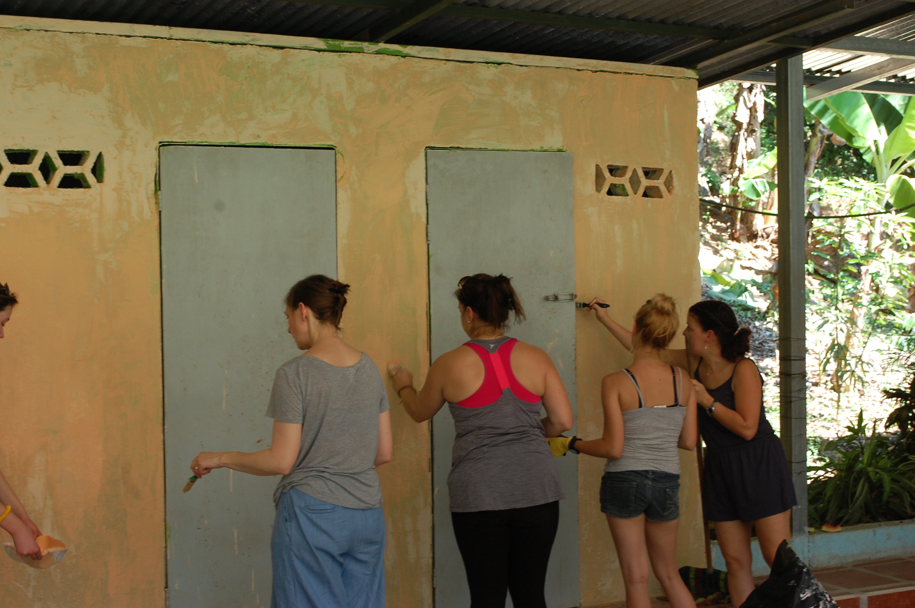 What a day! We are on the second day of our rotation. For today’s blog, the focus is on our visits to local elementary schools Escuela Barú and Escuela de Platanillo. (Our third rotation school was Escuela Puerto Nuevo, a tiny one room, one teacher school with a total of 14 students- an updated set of photos are below.) We arrived mid morning and immediately got to know the Costa Rican students through games like soccer and hopscotch. After polishing up the schools with a fresh coat a paint on a few walls and helping refurbish classroom furniture our Convent and Stuart Hall boys and girls handed out the school supplies that they had brought to Costa Rica. The days were rounded out with a trip to the local swimming hole complete with a rope swing. Four of our students recap their day: