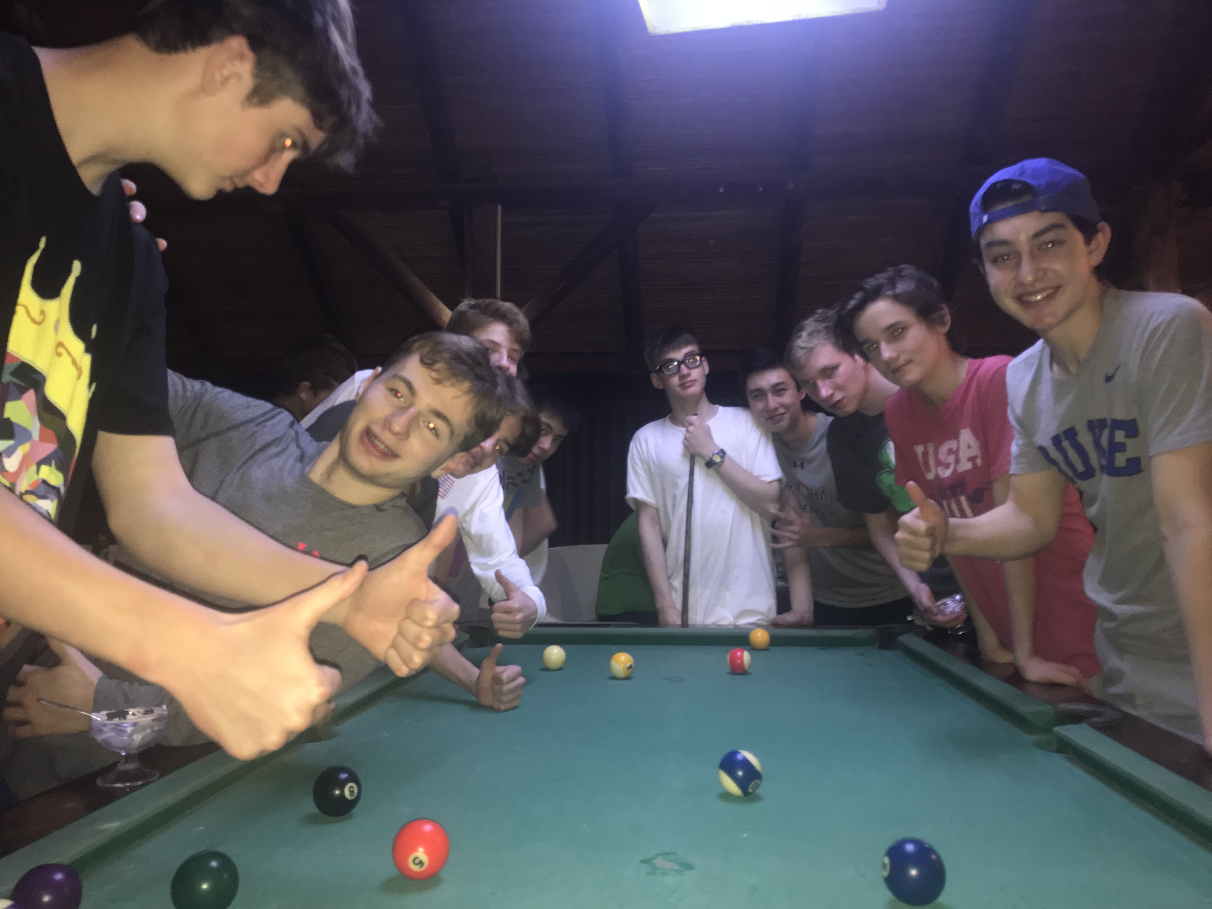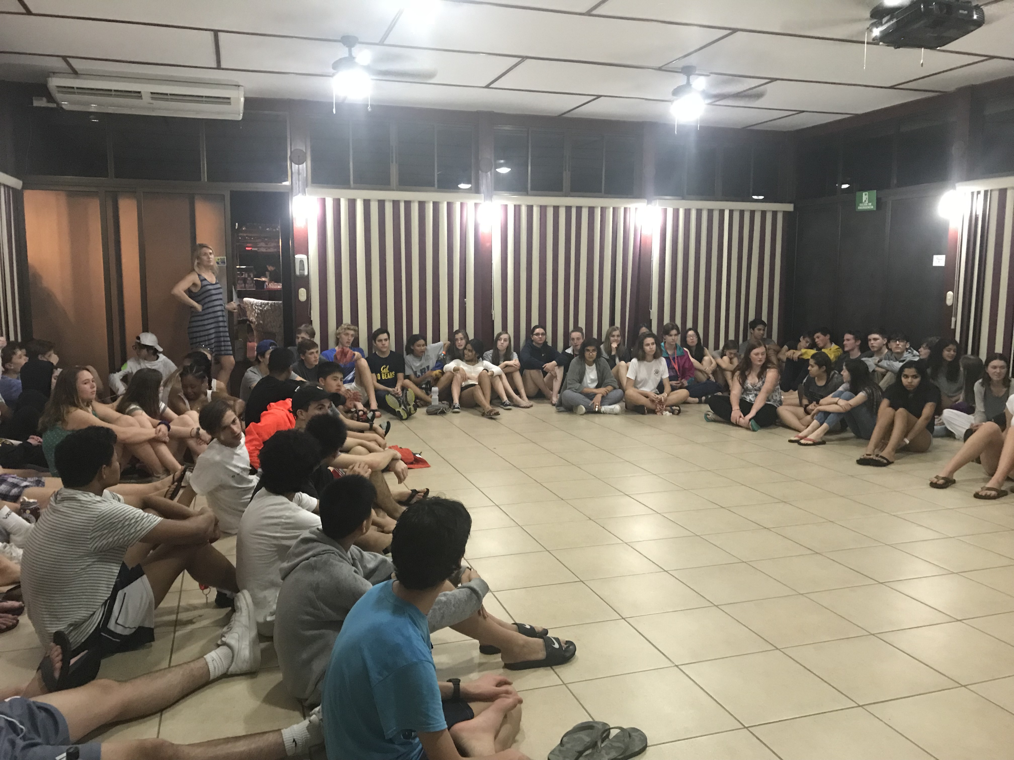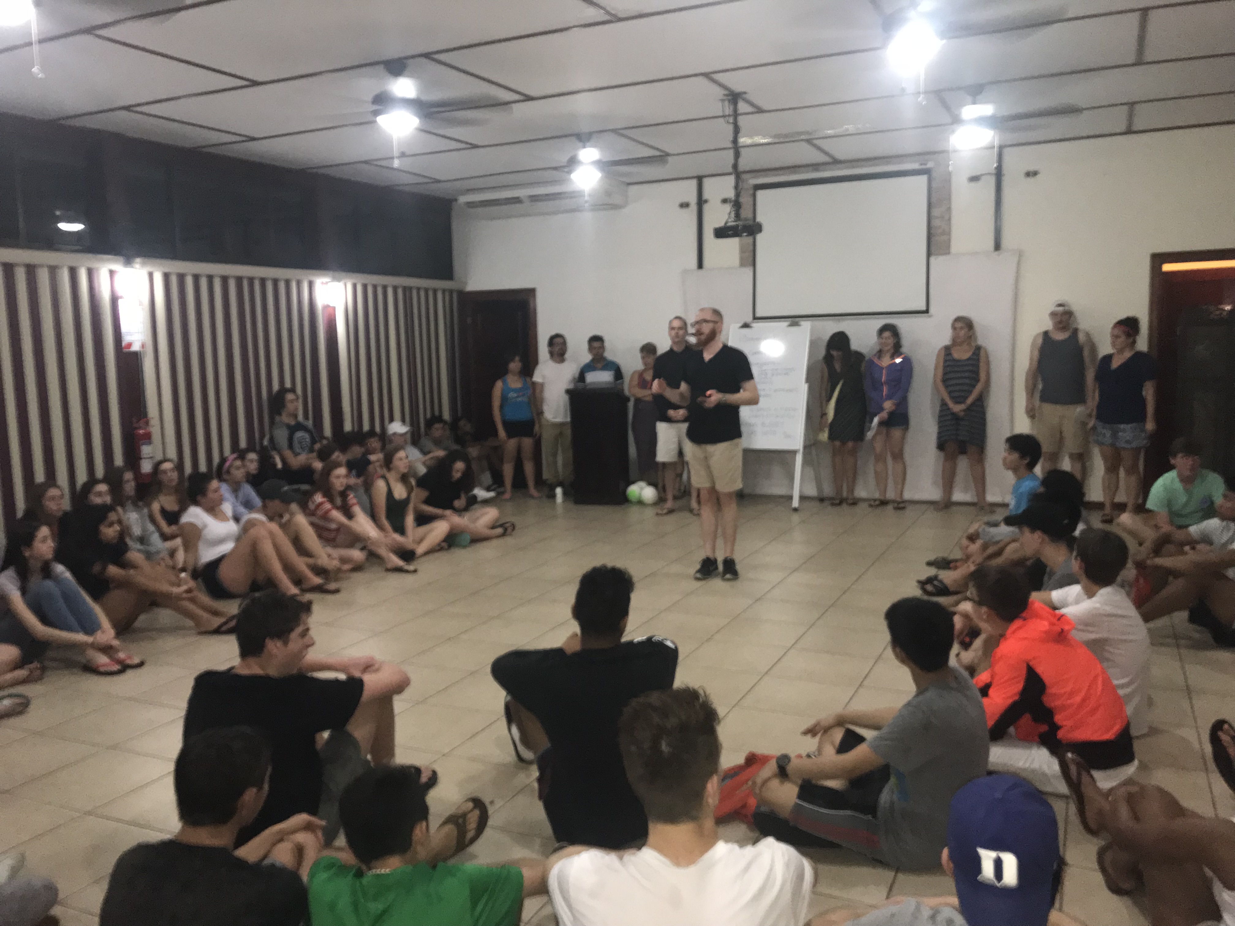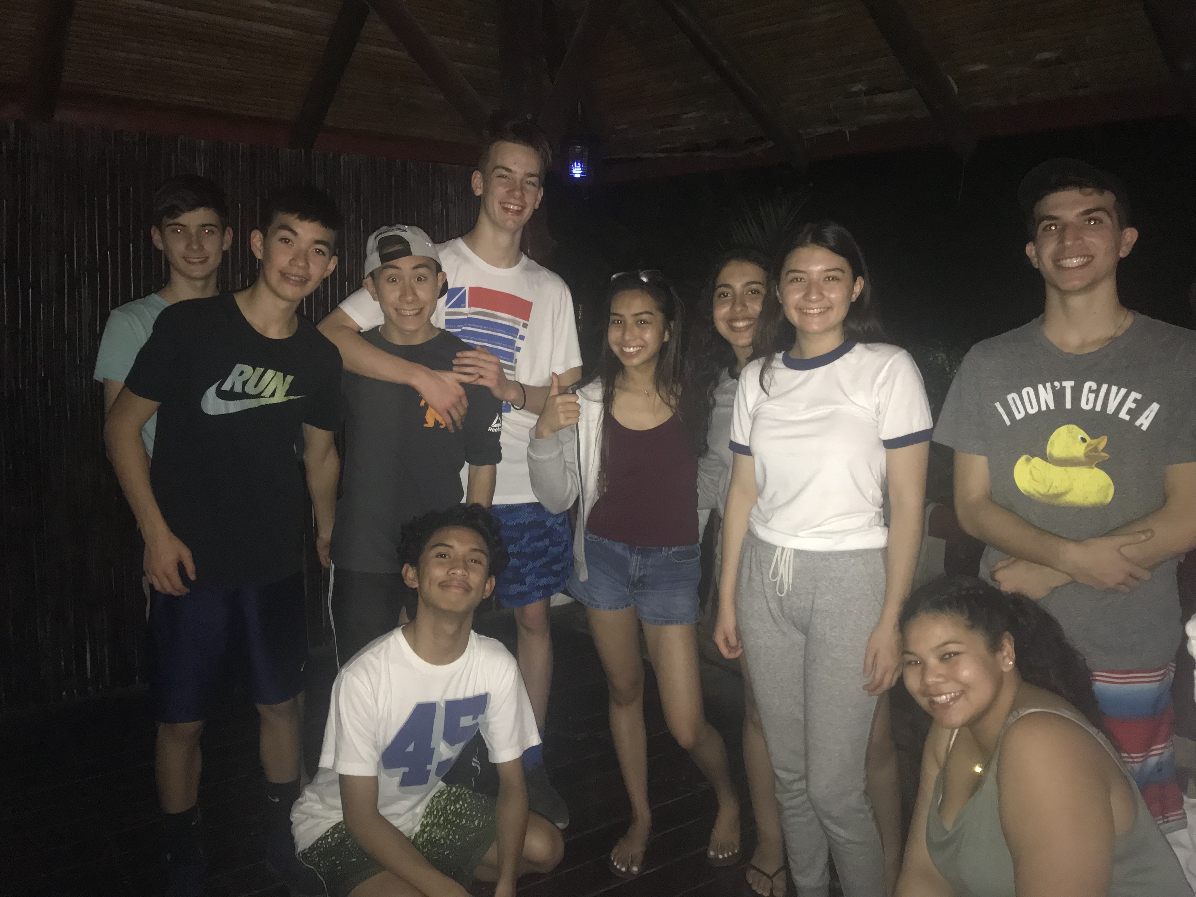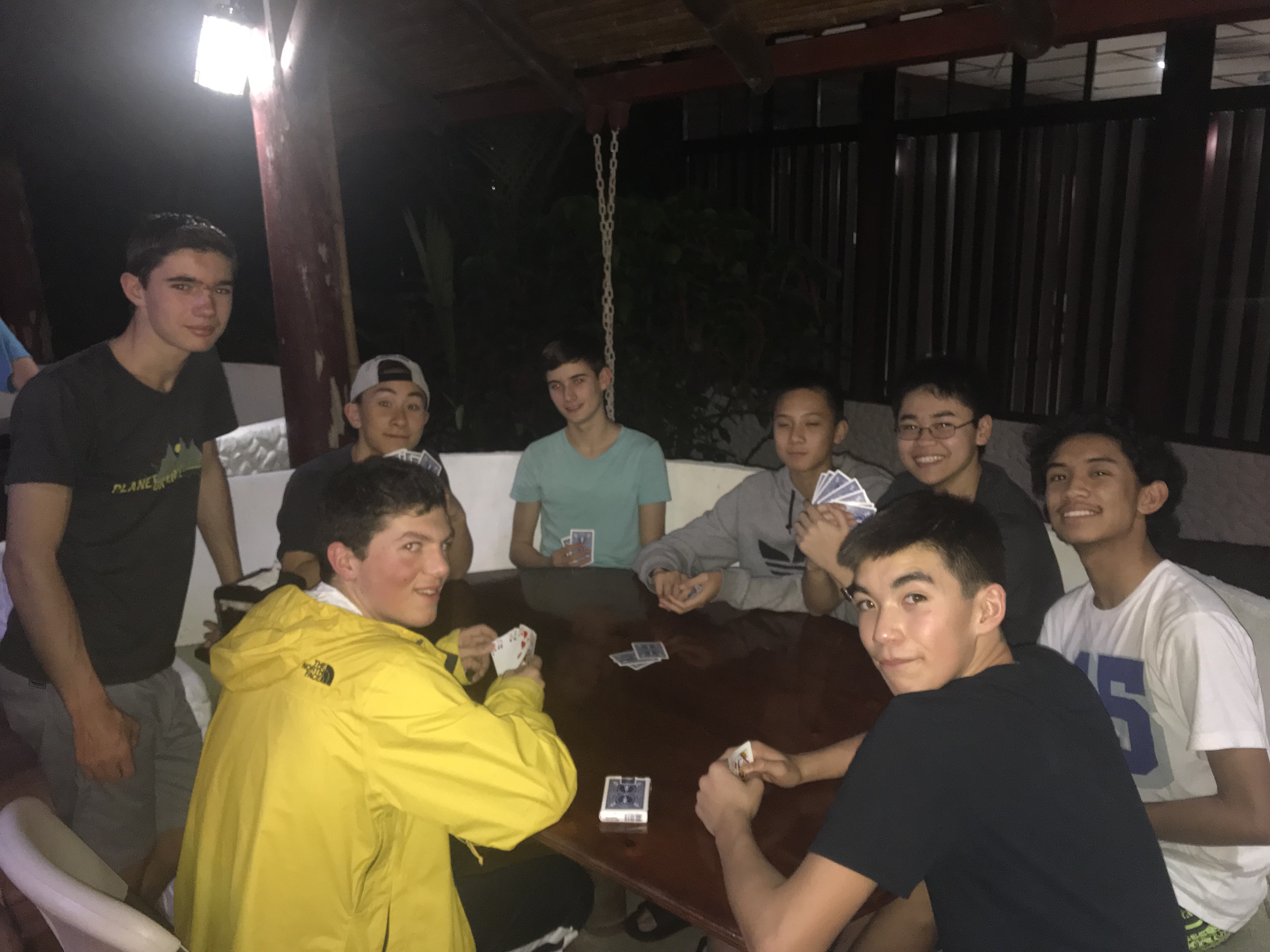 Once we arrived at our lodge, we enjoyed time in the pool and in the common recreation areas with cards and games before dinner. After dinner, we gathered for our second community meeting. Mr. Pryor Lorentz led us in an espacio and in a prayer, and our chaperones shared the plans for the groups in the coming days. Our three groups will cycle through three main activities in the coming days—-service at a local school, horseback riding to a waterfall, and zip lining. We are excited to update you all in the coming days about our adventures!