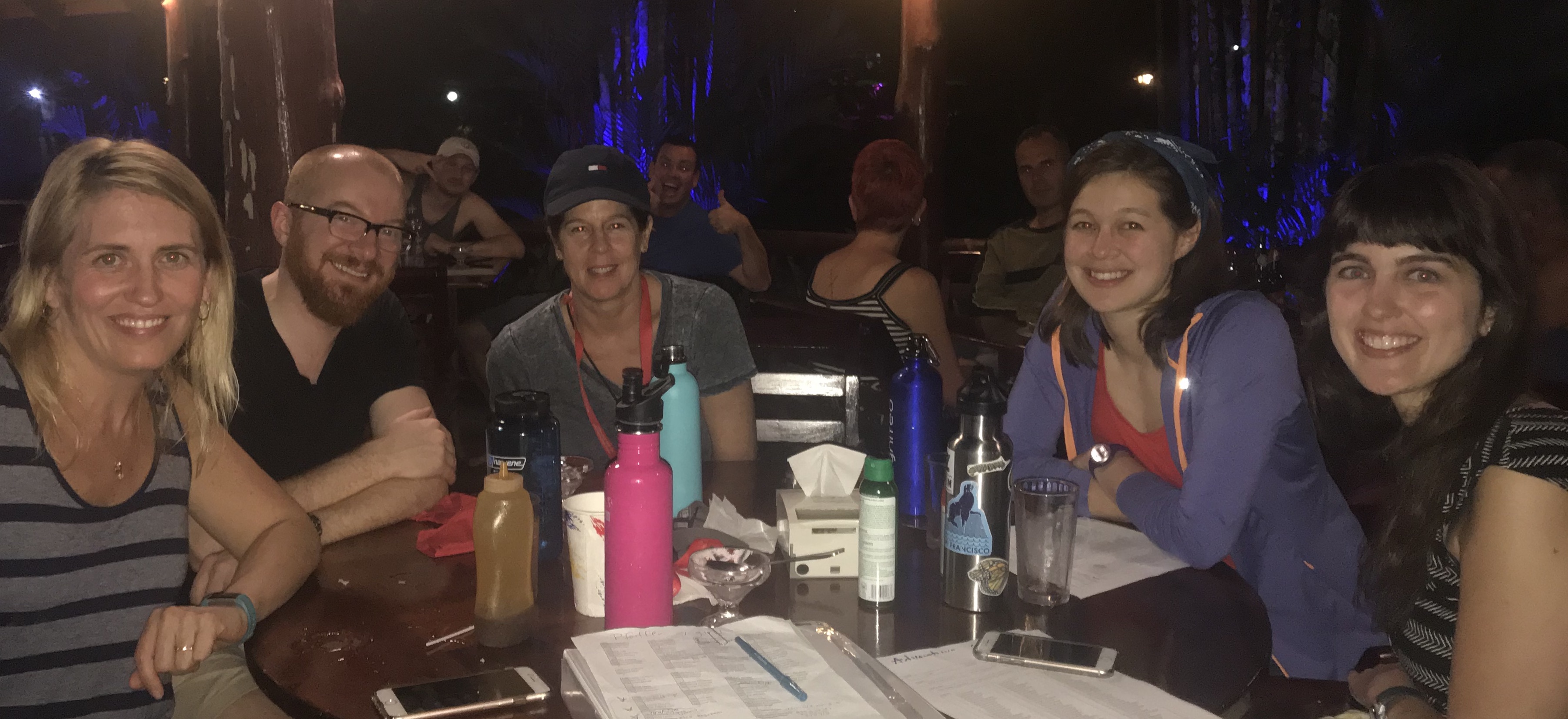 After breakfast this morning, we rode buses to a couple fun stops on the way to Dominical. First we stopped for some local snacks at a roadside market, and everyone got their fill of plantain chips, fresh fruit, and pipas frías (coconut water). Next stop was a bridge that has a fantastic view of a crocodile preserve, and then we were off to spend part of the afternoon at Playa Hermosa in Dominical.