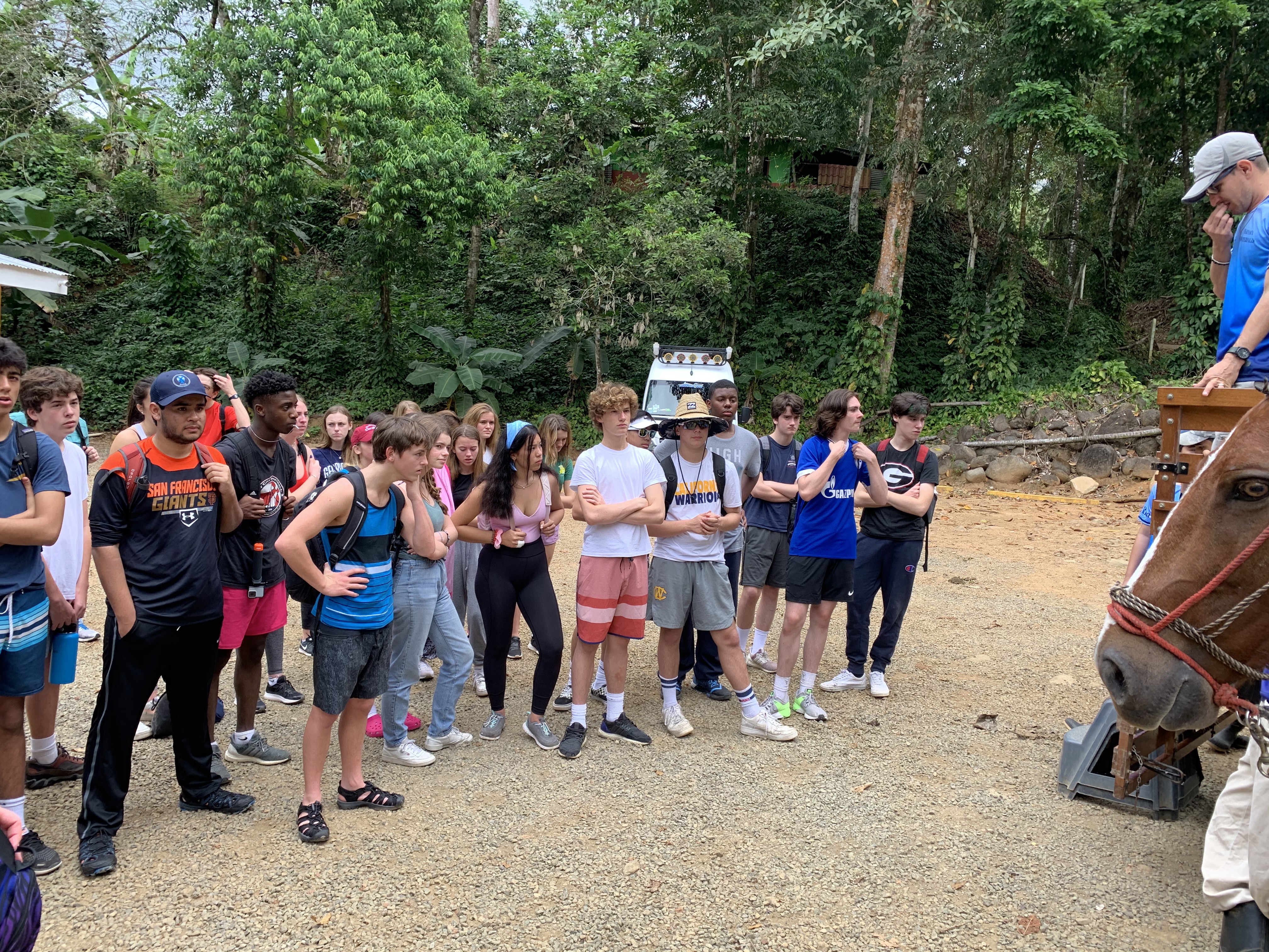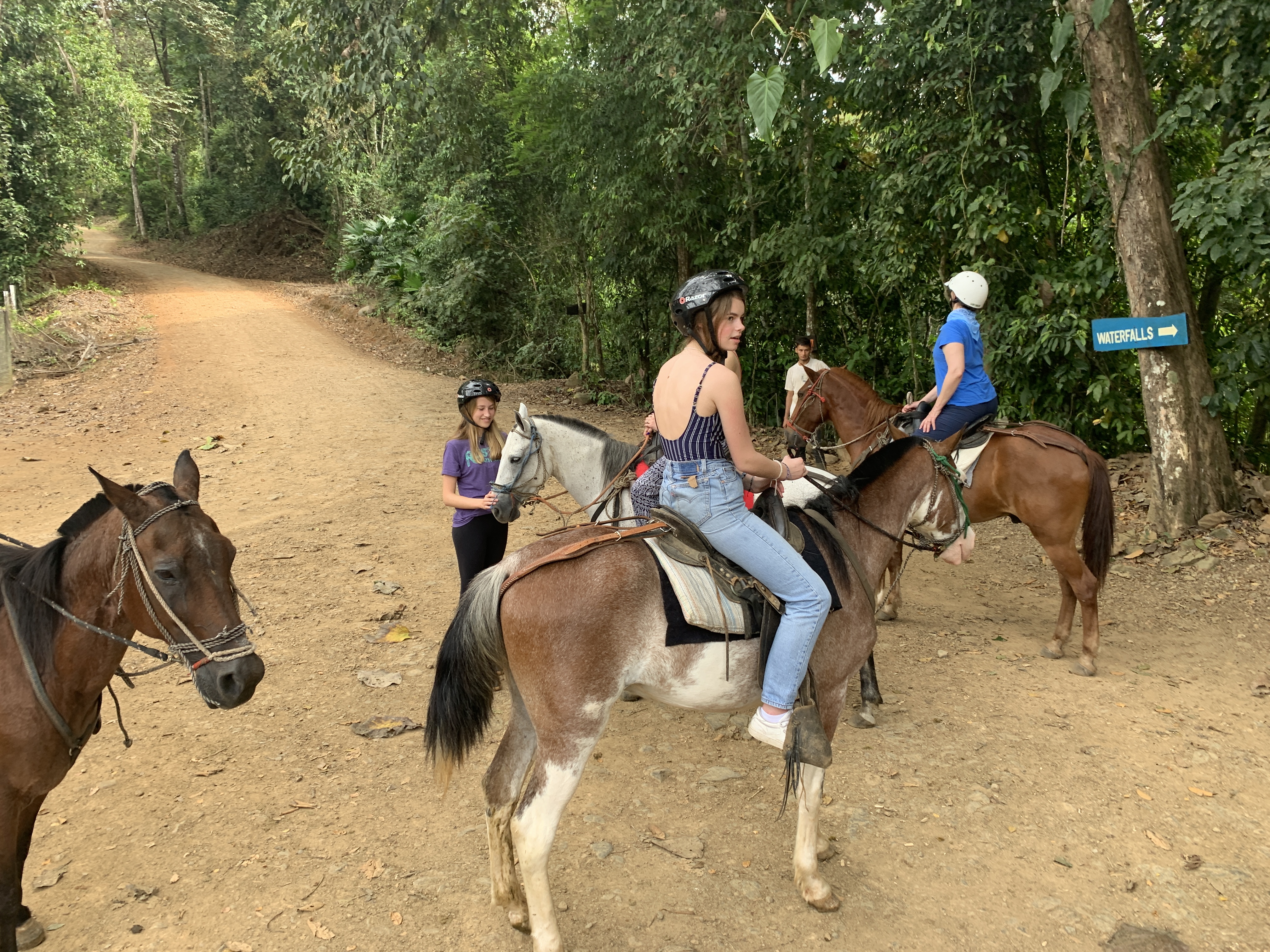 So far, the Costa Rica trip has been amazing! Yesterday my group went horseback riding through the rainforest to a hidden waterfall. The horse riding was super fun even though I was nervous at first because I do not have a lot of experience with horses, but I was very comfortable by the end. Once we made it to the waterfall we got to swim, climb up the side of the waterfall and jump off from 25 feet up. I am personally not very afraid of heights but a few of my group members were, and it was really nice to see everyone encouraging them and being supportive. The food has been amazing too, and we have done a lot of salsa dancing. There were apparently two earthquakes in the middle of the night and I was a little disappointed that I didn’t feel them. However, it was nice to have a little touch of San Francisco down here. Today I did service at a school in the town. The kids were so sweet and were very kind about my lack of Spanish skills, so we had a really good time and broke down the language barrier pretty well. Tomorrow I go zip lining and snorkeling which I am excited for! I have heard friends that went before me raving about it all. Even though I am homesick and miss my friends and family, I know I am going to miss Costa Rica and all of these experiences the second we leave.