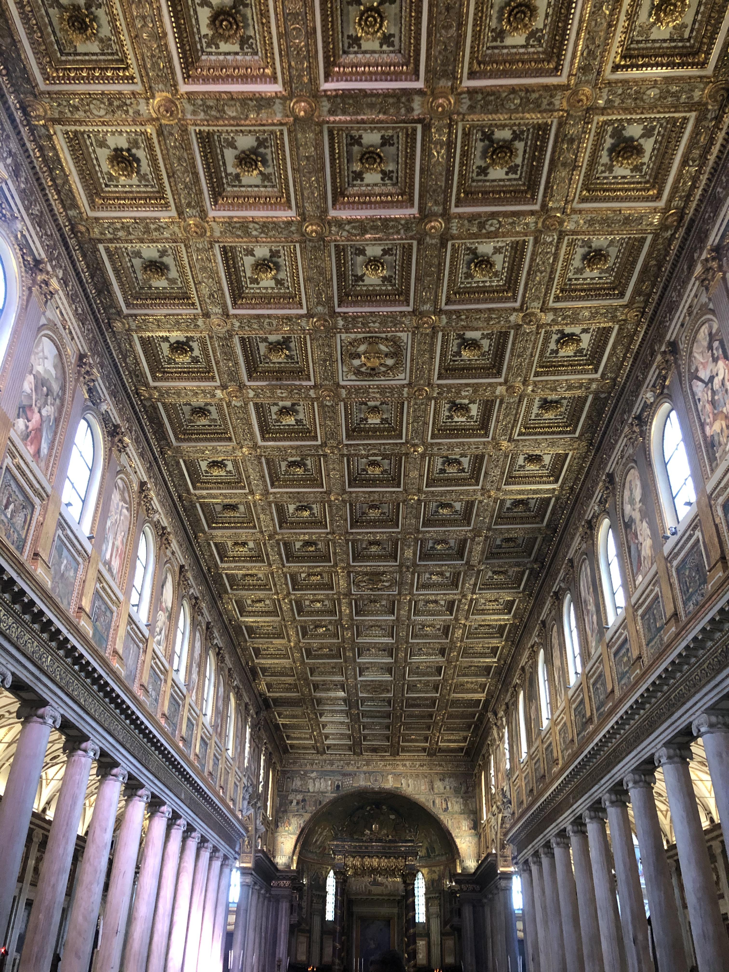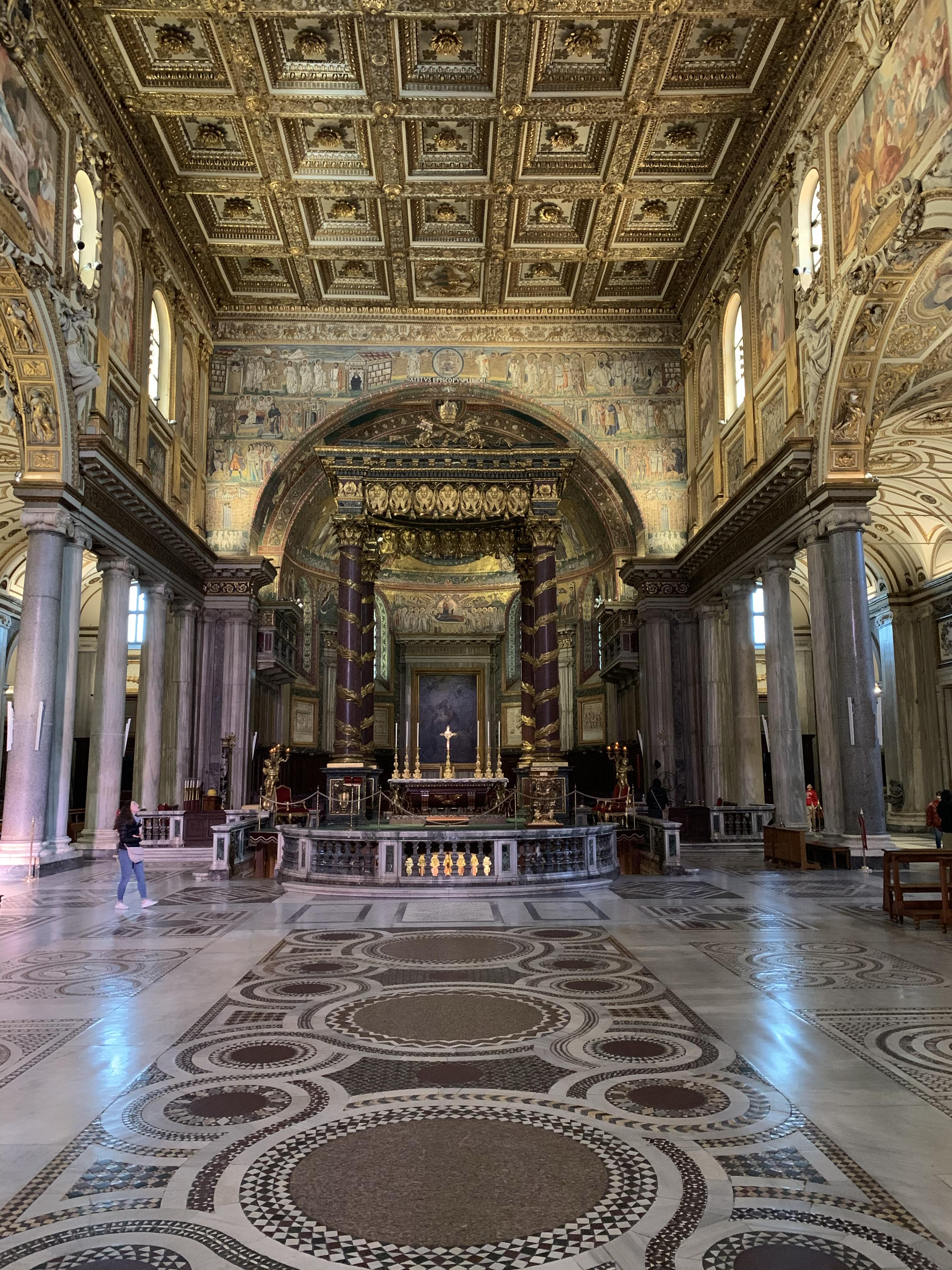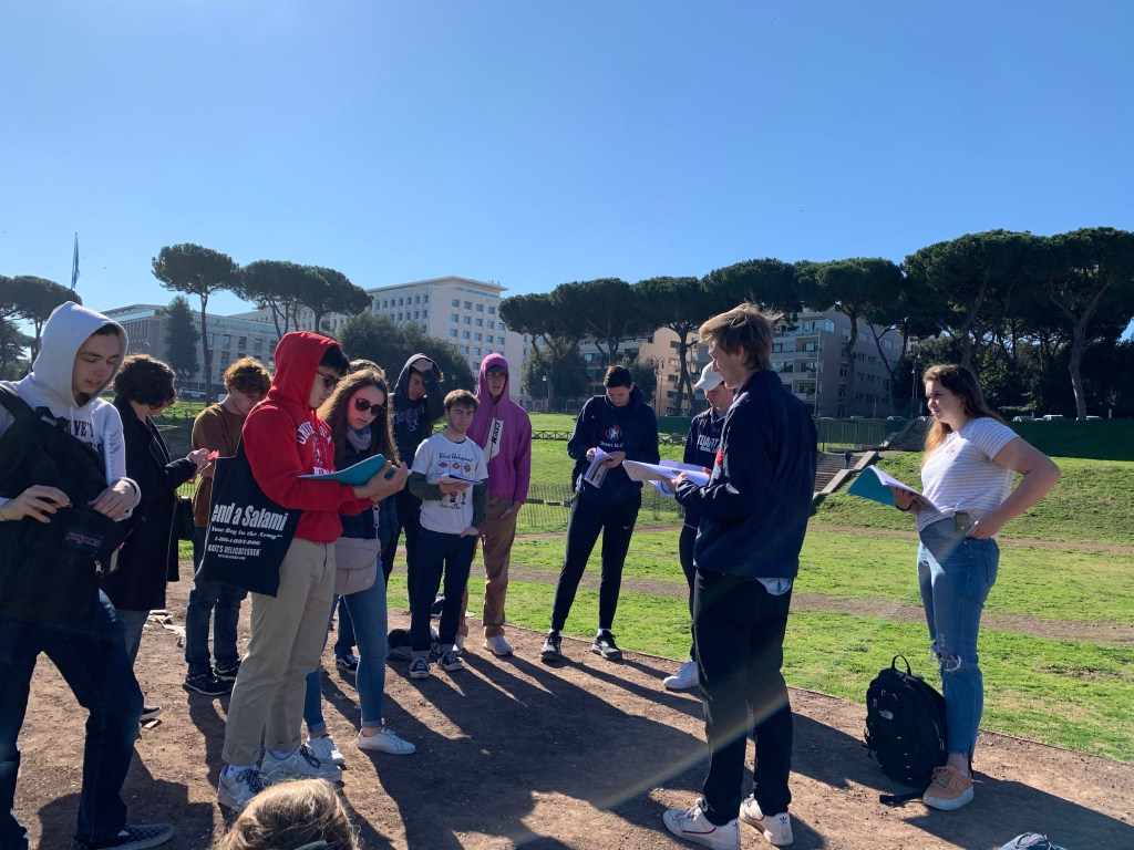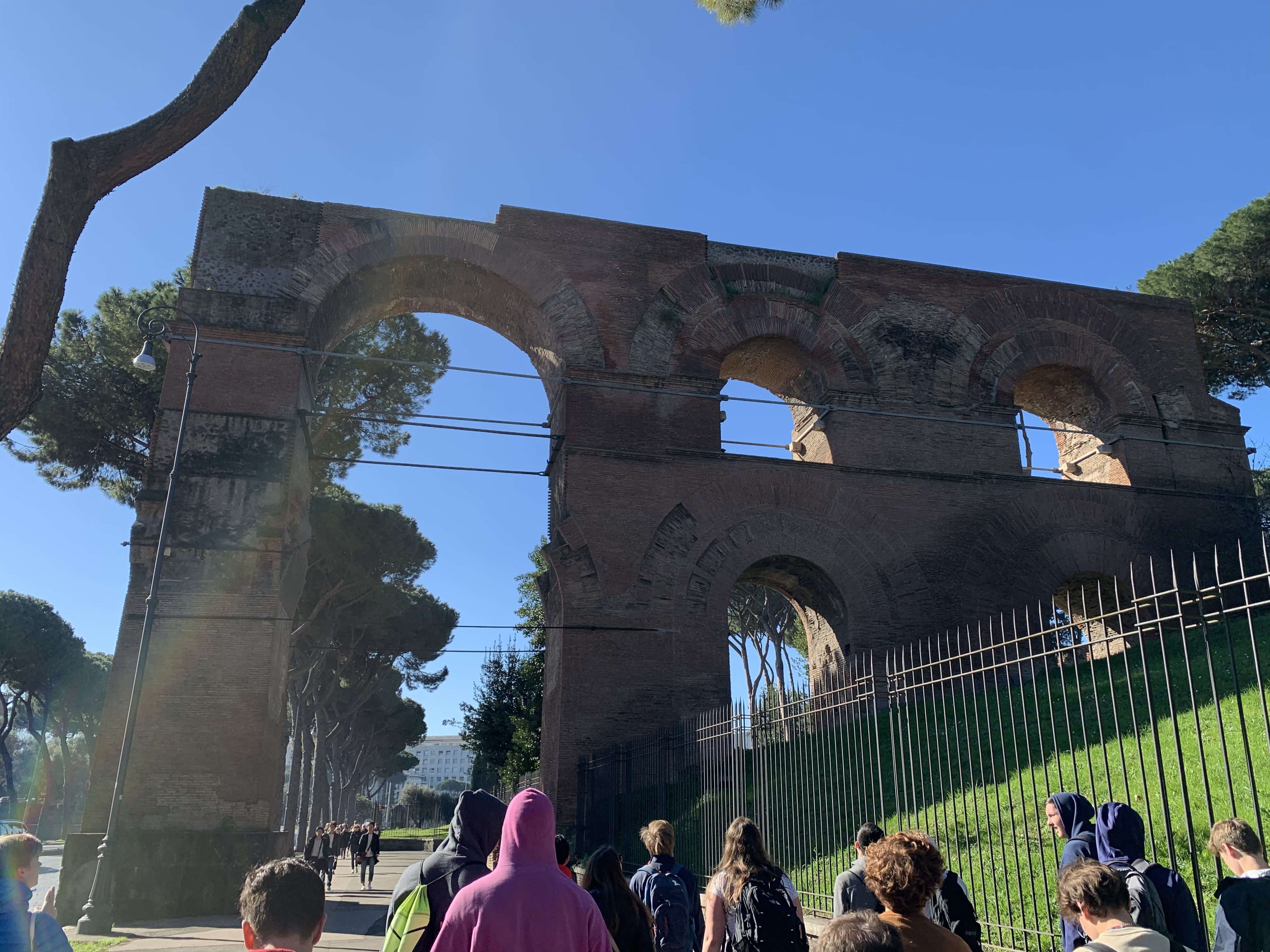 The group visited a beautifully ornate church with gold and marble from floor to ceiling, a church with three levels of history (ancient Roman buildings and streets, a medieval church and a church that is still in use today), the Circus Maximus, which was used for chariot races, and the Baths of Caracalla. In the afternoon, they visited the Villa Borghese to admire the works of art.