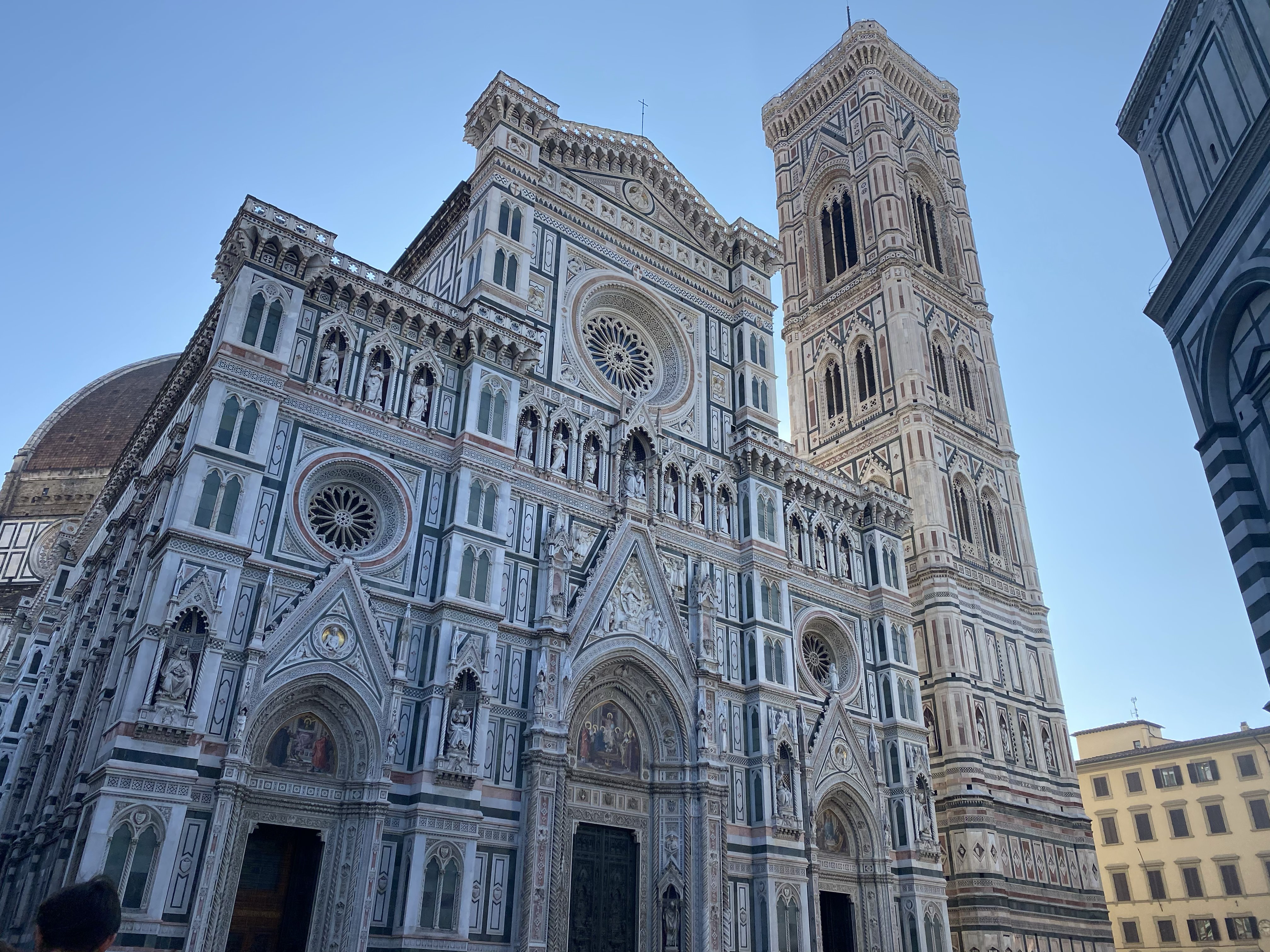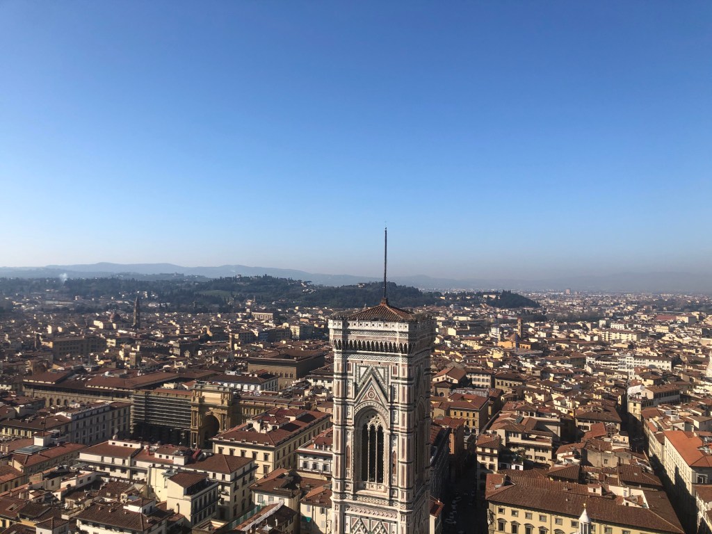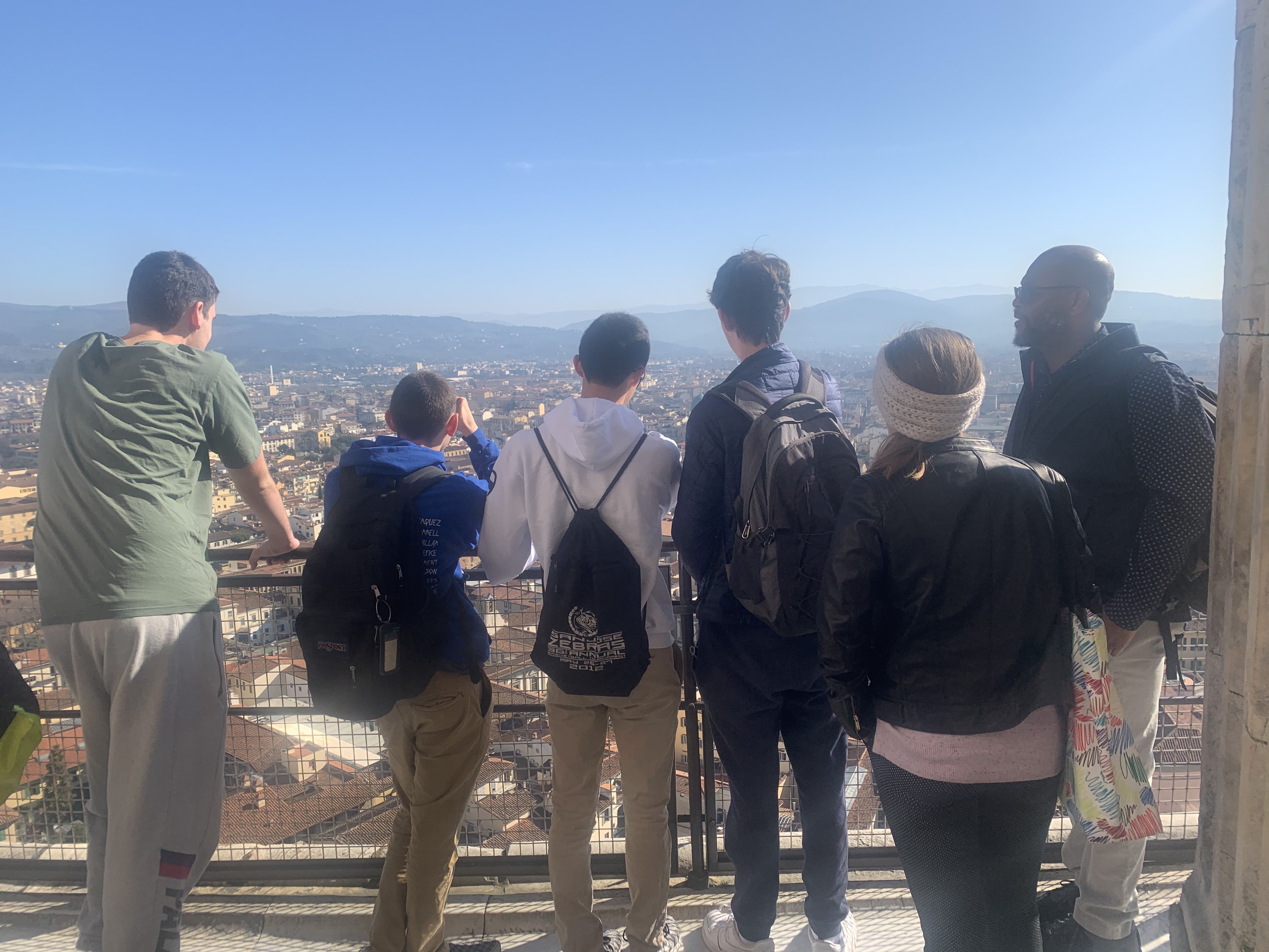 Today our group traveled by train to Florence. We saw the Duomo, went to an outdoor market and visited the Uffizi Museum. The Duomo gave us access to the most stunning sights of the city with a 360-degree view. On the way up we saw a stunning painting on the inside of the dome depicting the last judgement in vivid detail. Following the Duomo, we walked through an outdoor market to a sprawling indoor food market. It was complete with delis, fish marts and restaurants serving everything from artisan vegetarian burgers to sushi. Walking around outside at lunch gave me a full sense of the city of Florence, a large town with a vibrant culture that still manages to feel small and collected. The city was celebrating carnival while we were there, which only added to the vibrancy and life in the city.