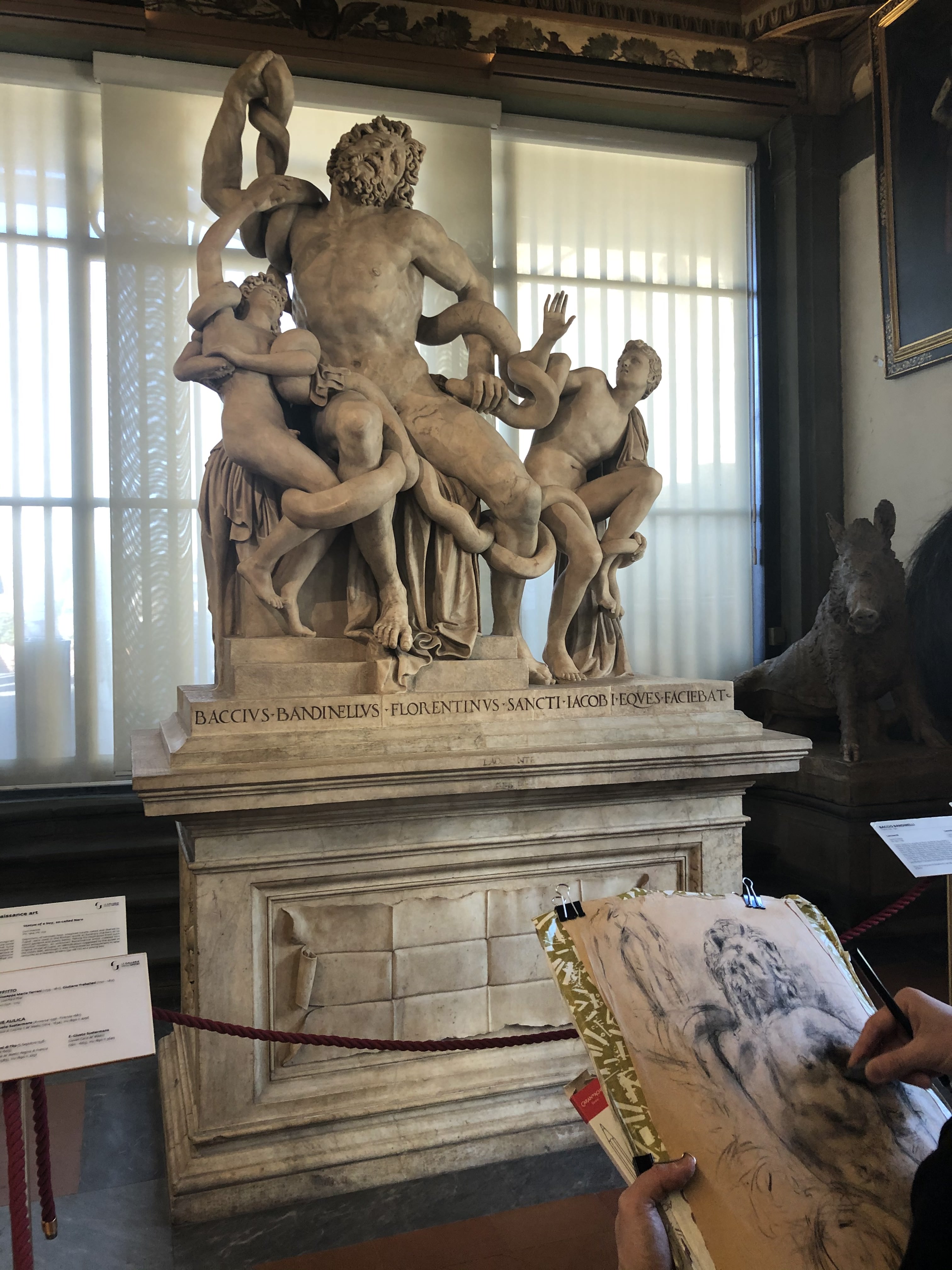 The last place we went was the Uffizi Museum, home to some of the most stunning artwork in the world. We saw examples of feudalistic artwork with incredibly intricate gold leaf patterns on them. This surprised me because the skill required to make something so detailed was equivalent to that of the best Renaissance artists, and I had always believed feudalistic art to be inferior. The museum continued through the Renaissance and Baroque periods of art. Although I had to stop for at least a minute on every painting and sculpture I saw, two specifically stood out to me. The first was Botticelli’s Birth of Venus, which fully lived up to my expectations. The second was Godfried Schalcken’s The Fame, which depicts a woman in a dark room with a single flame being held behind her. This was the first painting in an entire room of similar ones that create a deeply intense contrast of shadow and light by placing the source of light at the center of the image. Going to Florence put me face to face with some of the most stunning scenes of my life.