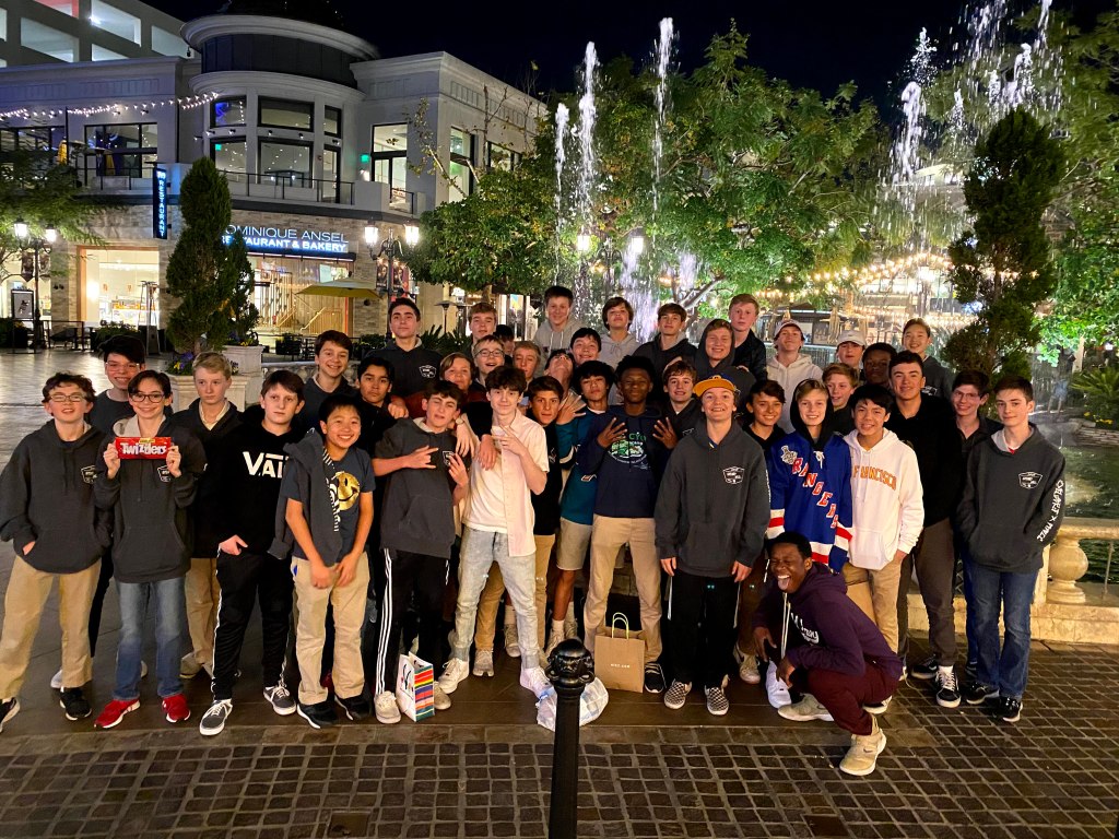 For the evening, we had a “wise freedom” dining opportunity at the Grove, which ended with a choice of movies. After leaving the Grove, we ended with a group photo in front of a fountain.
