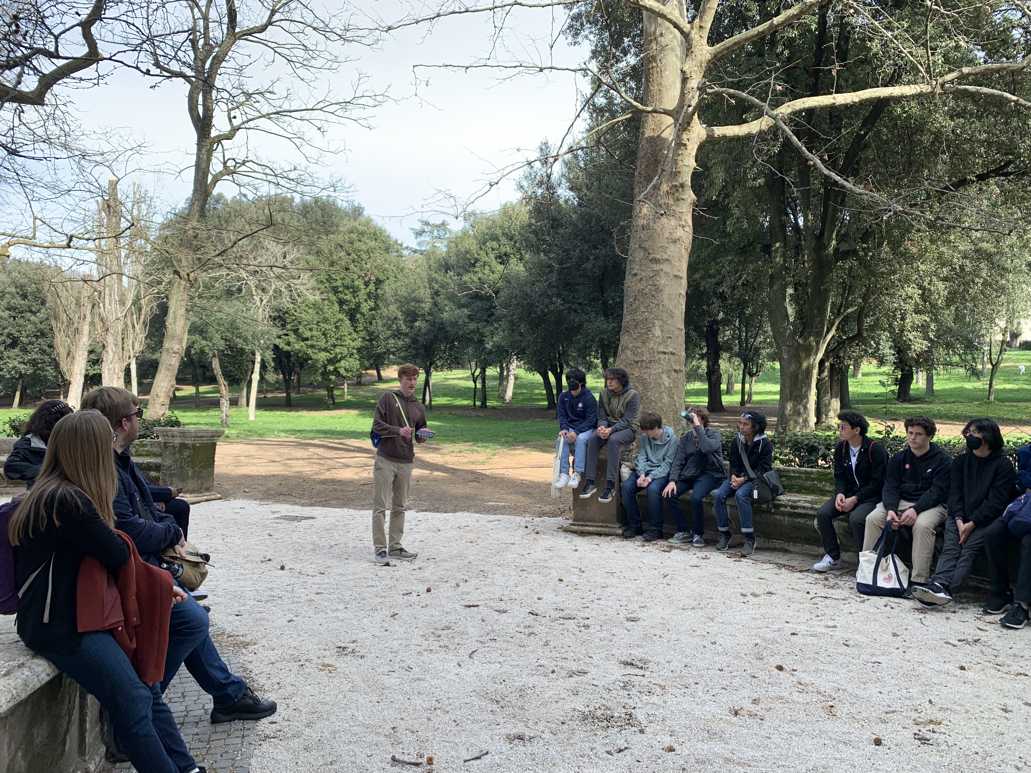 The highlight for many today, including Guiseppe Scala, Gr. 10, was the many sculptures we saw in the Villa Borghese. While it was collectively agreed that Bernini’s works are stunning, Guiseppe said that Pauline Bonaparte as Venus Victrix by Canova was his favorite piece saying that, “Just the bed alone is so detailed. I wanted to spend more time looking at it.” In addition to the numerous works on the walls and on podiums, visitors need to remember to look up at the gorgeous ceilings. “They’re breathtaking works of art,” said Sofia Tobiason, Gr. 10.