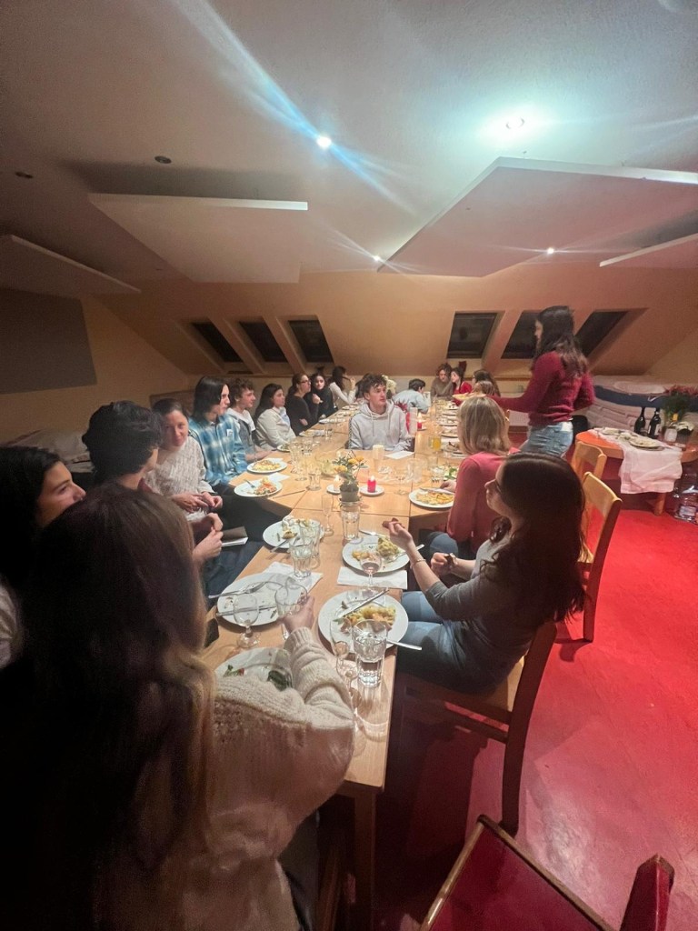 After visiting two contemporary art museums yesterday, all 26 of us headed over to a protestant church in the absence of an American Thanksgiving. After many failed attempts at finding a venue, a very gracious pastor welcomed us with open arms into her space so that we could celebrate what we are grateful for. Several of us trekked over to a grocery store and picked up necessary supplies and then got to work on what would be our Thanksgiving feast. After almost two hours of slicing, stirring, and seasoning, we all sat down to eat and express our thanks. It was a long day but well worth it and it will certainly be a Thanksgiving to remember.