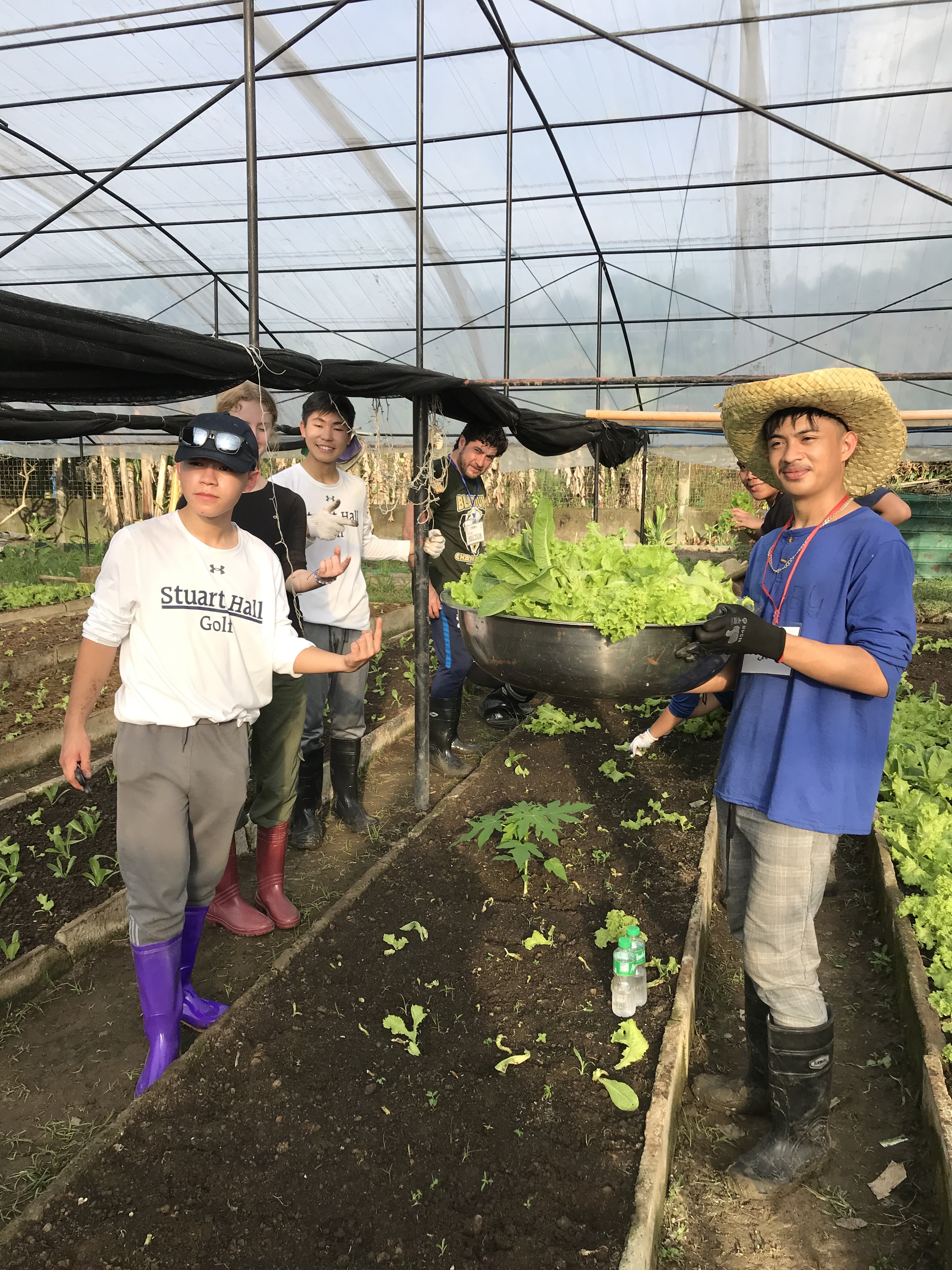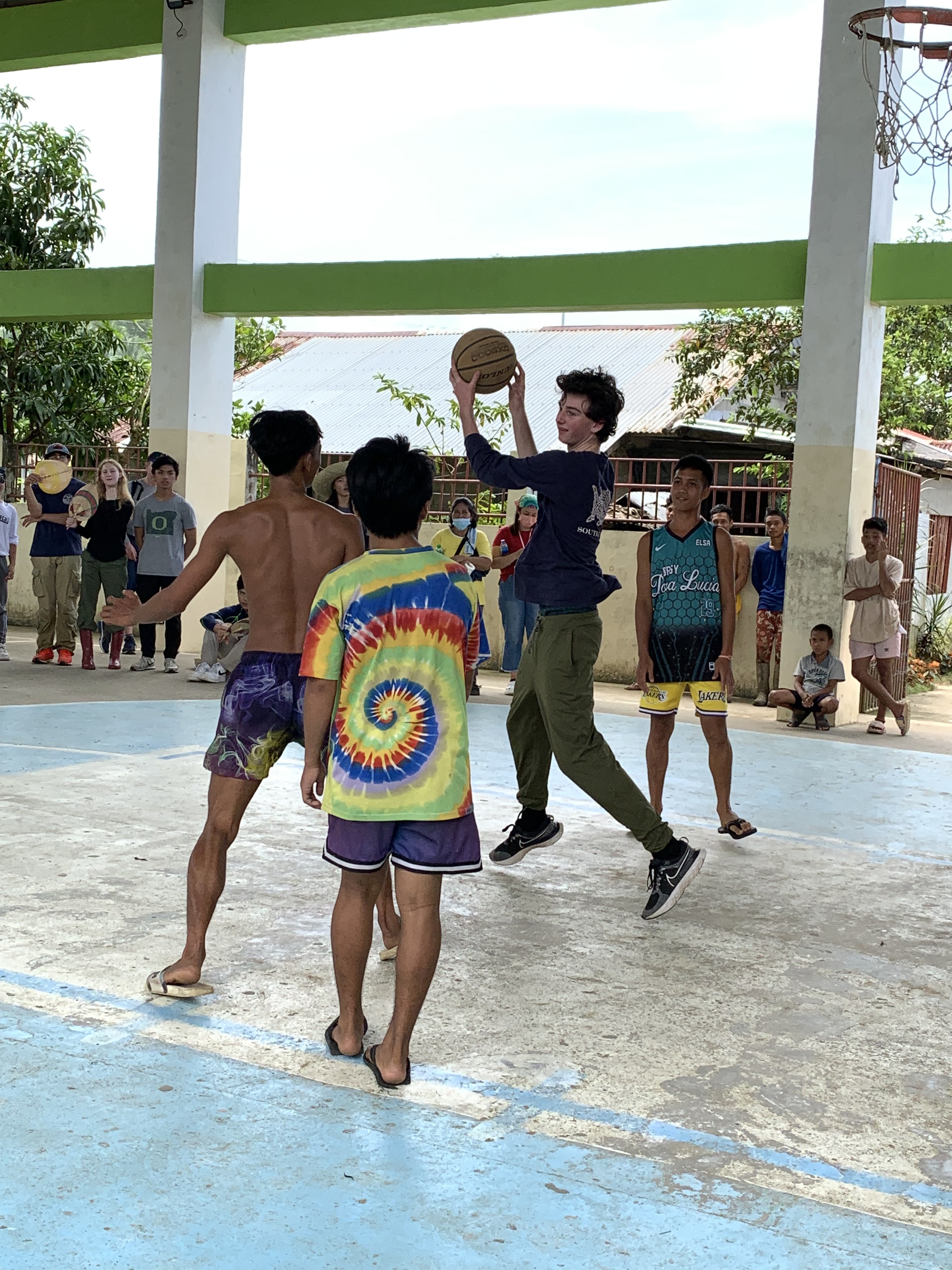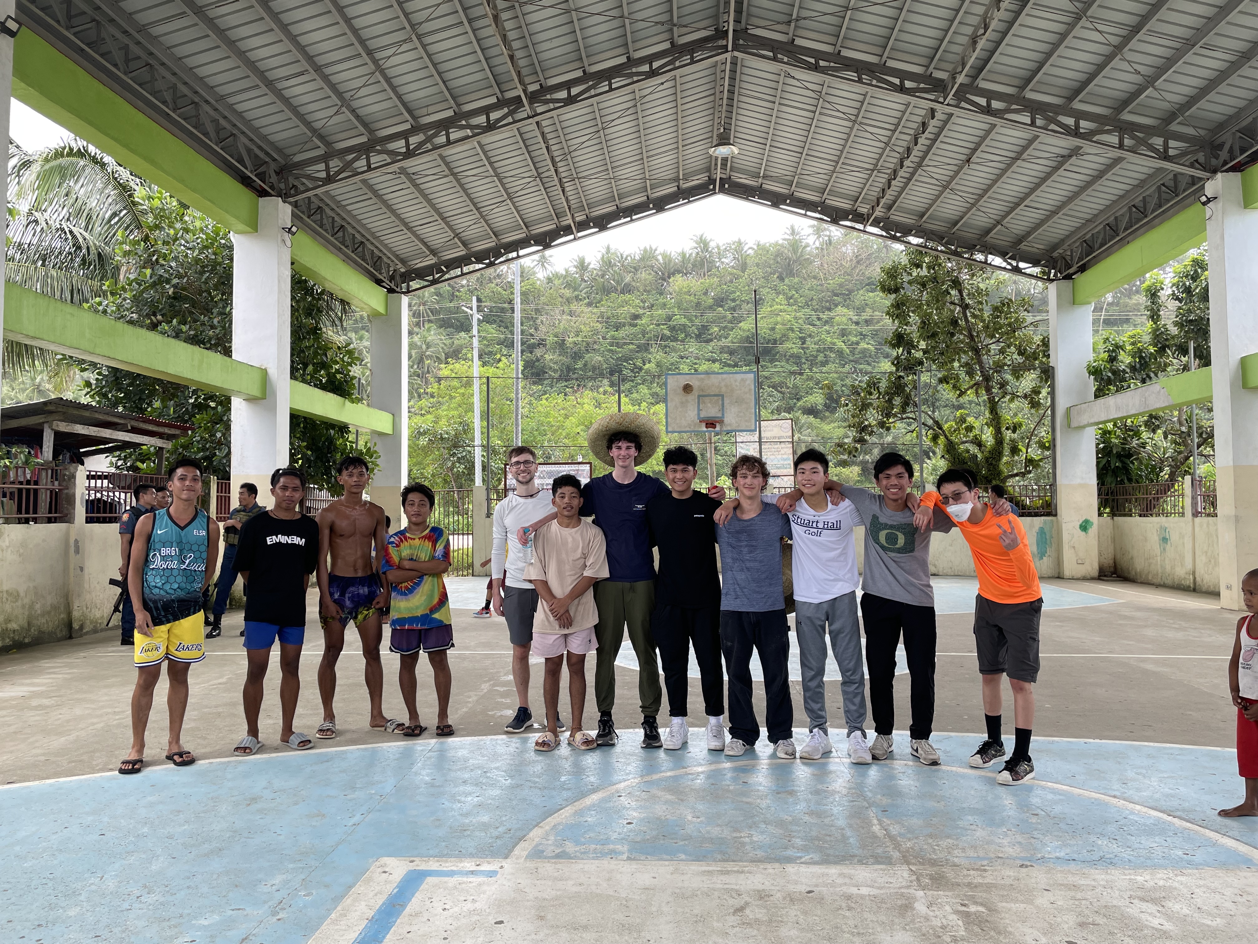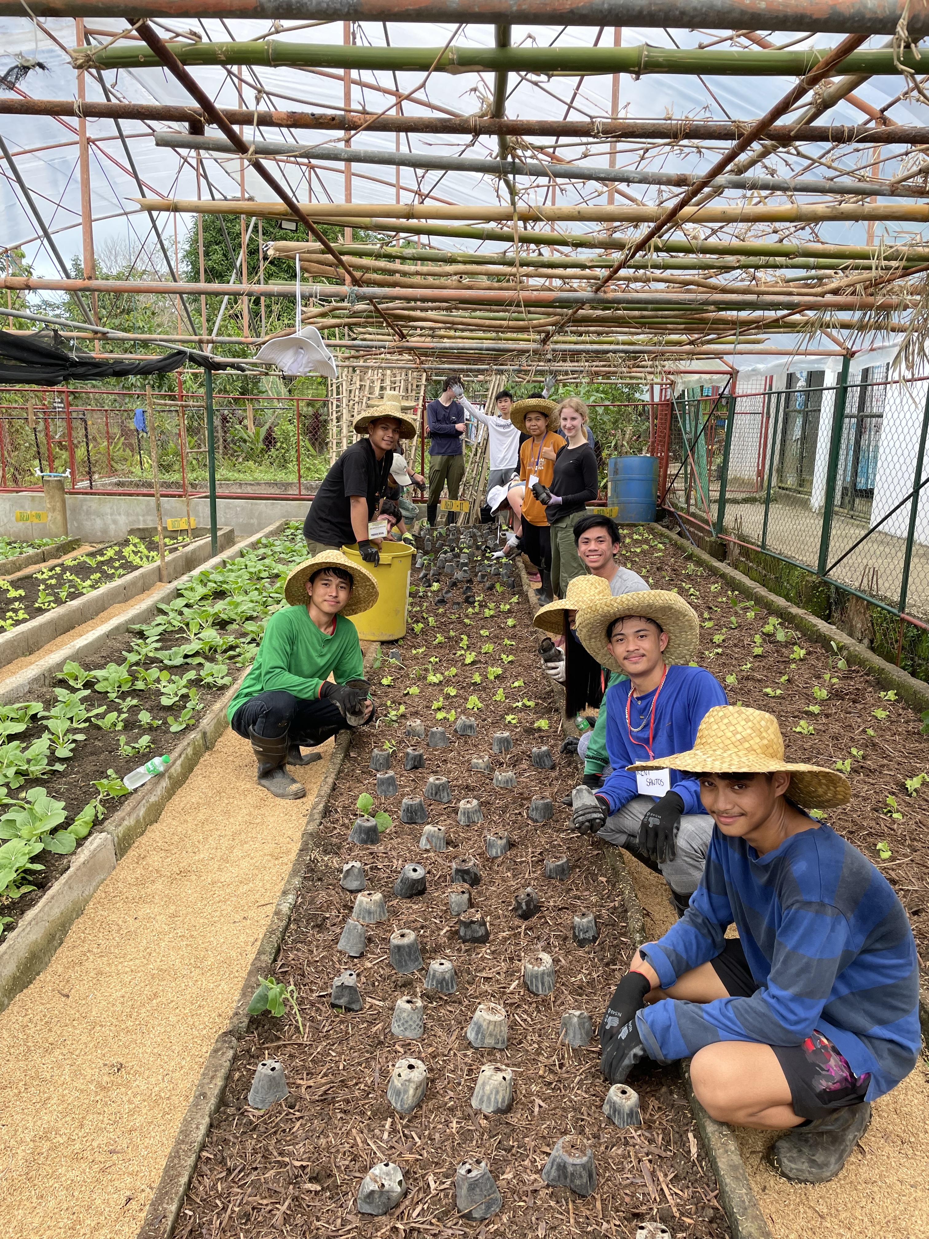 After our snack and break, we walked into the nearby village. There, we connected with local kids and observed the ways of life in Catarman. During our visit, we went to the sea, which we had seen earlier during the property tour. While in the village, some of the boys in our group caught a group of local boys playing basketball and eagerly joined in. This led to a spontaneous basketball game that demonstrated the universality of some experiences. After returning from the village, we observed Ash Wednesday by eating vegetable lumpia and other meatless dishes. Shortly after, we began our service work. We divided into multiple groups and went through each process of horticulture, specifically growing lettuce. It was hard, manual labor, something that most of us had not experienced before. Despite the uncomfortable heat and labor, we pushed ourselves to our limits and helped put food on the table for the community. It was a fulfilling experience to give back to a community that had already given us so much.