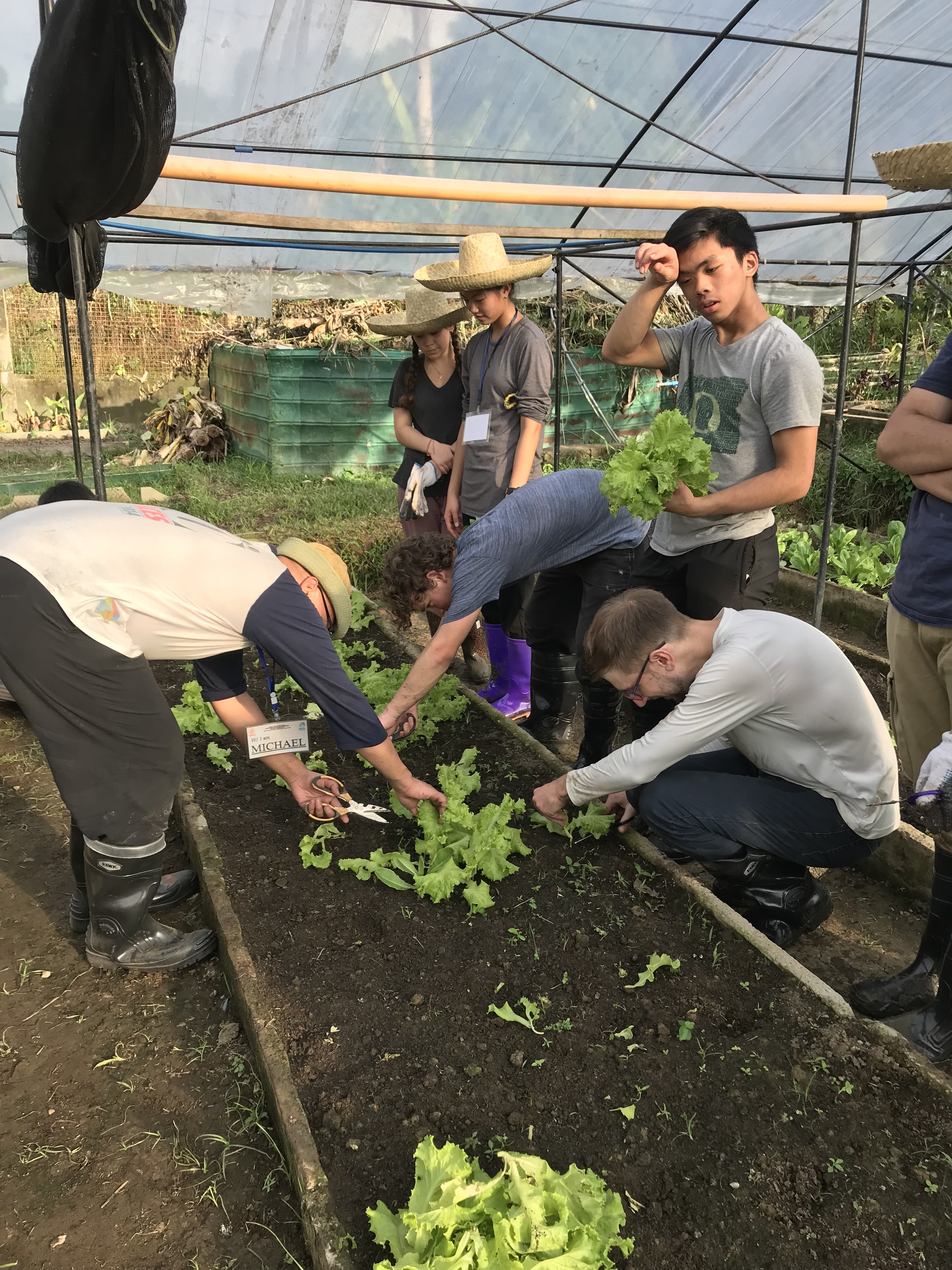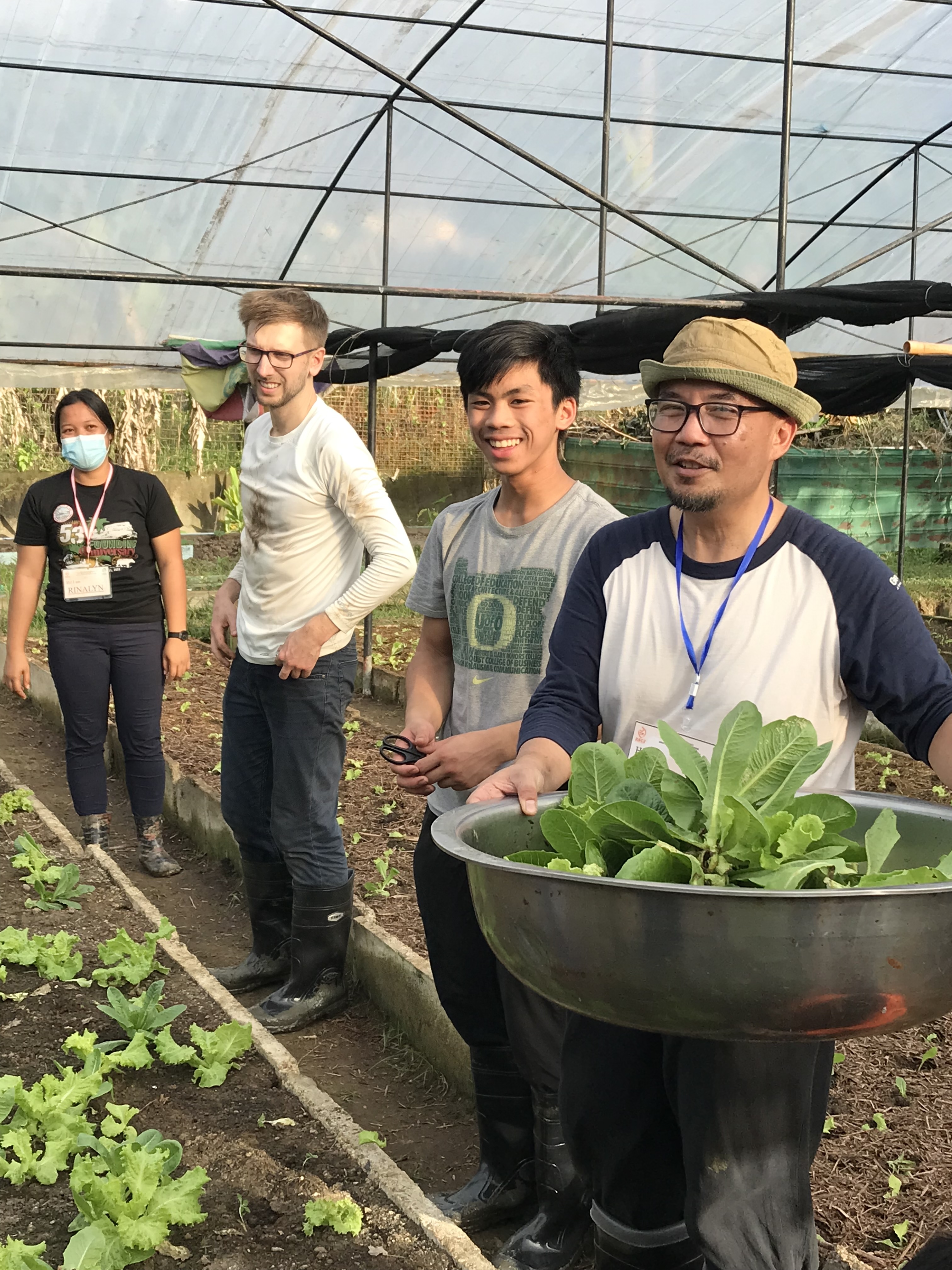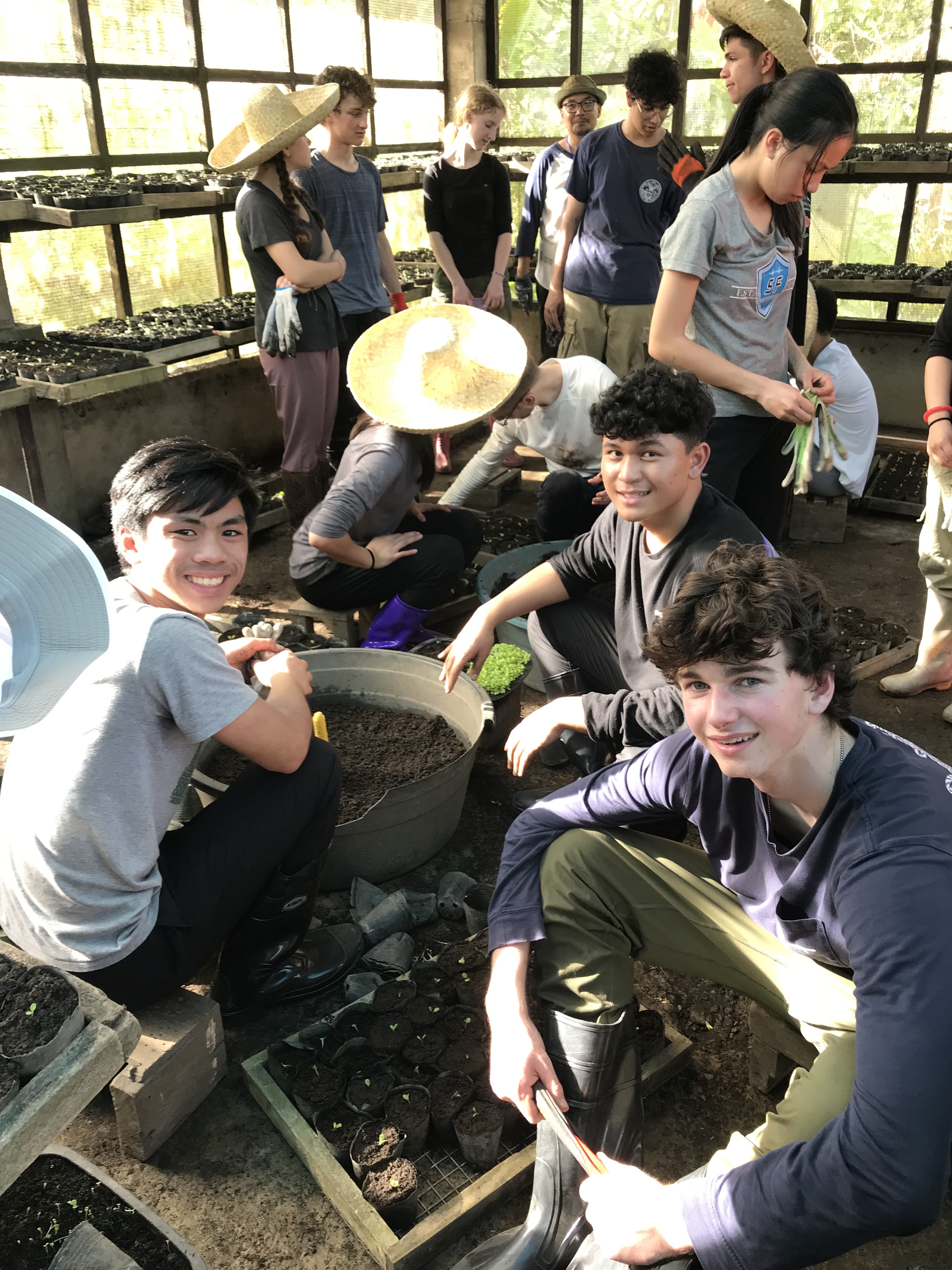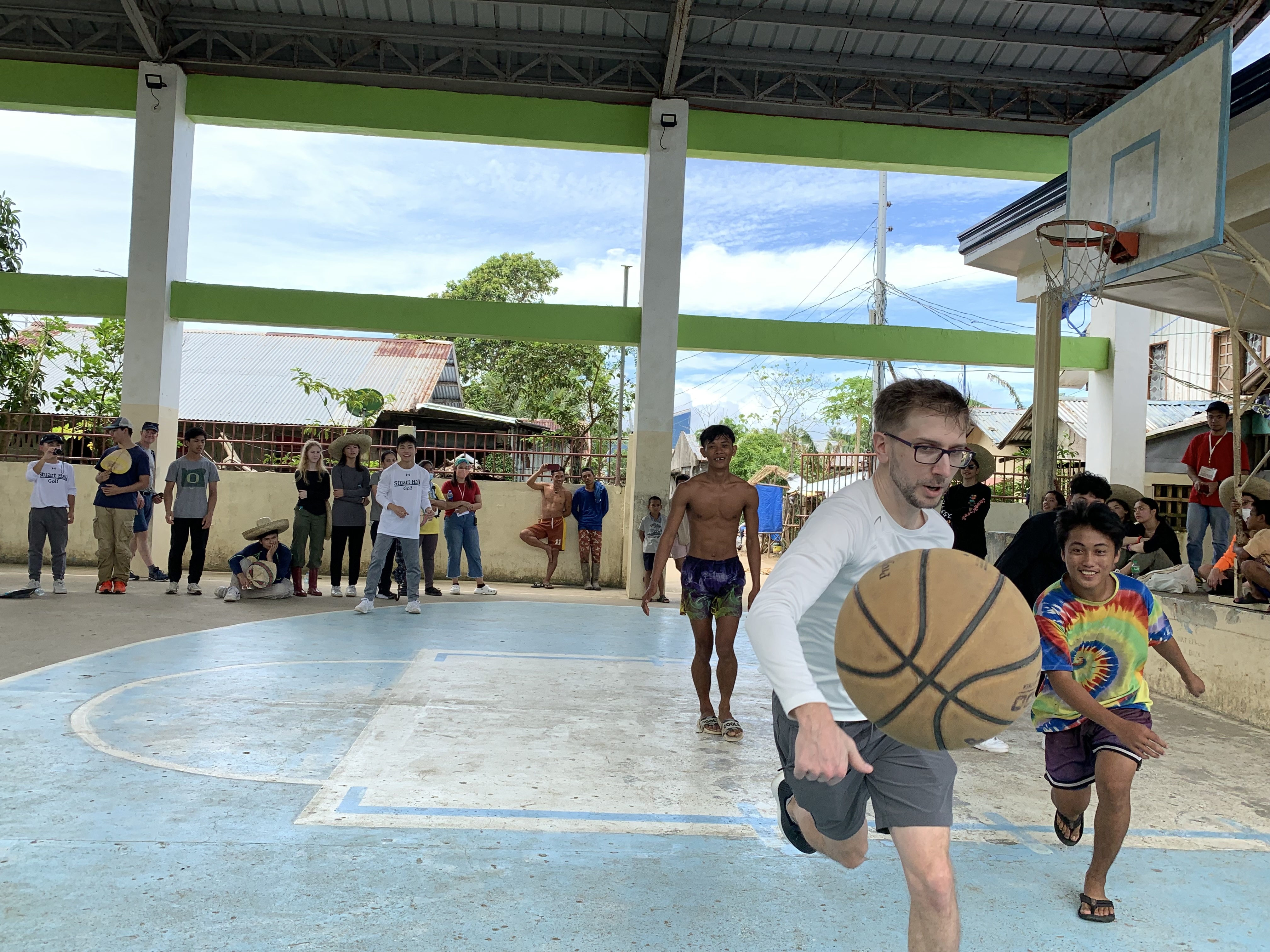 After our snack and break, we walked into the nearby village. There, we connected with local kids and observed the ways of life in Catarman. During our visit, we went to the sea, which we had seen earlier during the property tour. While in the village, some of the boys in our group caught a group of local boys playing basketball and eagerly joined in. This led to a spontaneous basketball game that demonstrated the universality of some experiences. After returning from the village, we observed Ash Wednesday by eating vegetable lumpia and other meatless dishes. Shortly after, we began our service work. We divided into multiple groups and went through each process of horticulture, specifically growing lettuce. It was hard, manual labor, something that most of us had not experienced before. Despite the uncomfortable heat and labor, we pushed ourselves to our limits and helped put food on the table for the community. It was a fulfilling experience to give back to a community that had already given us so much.