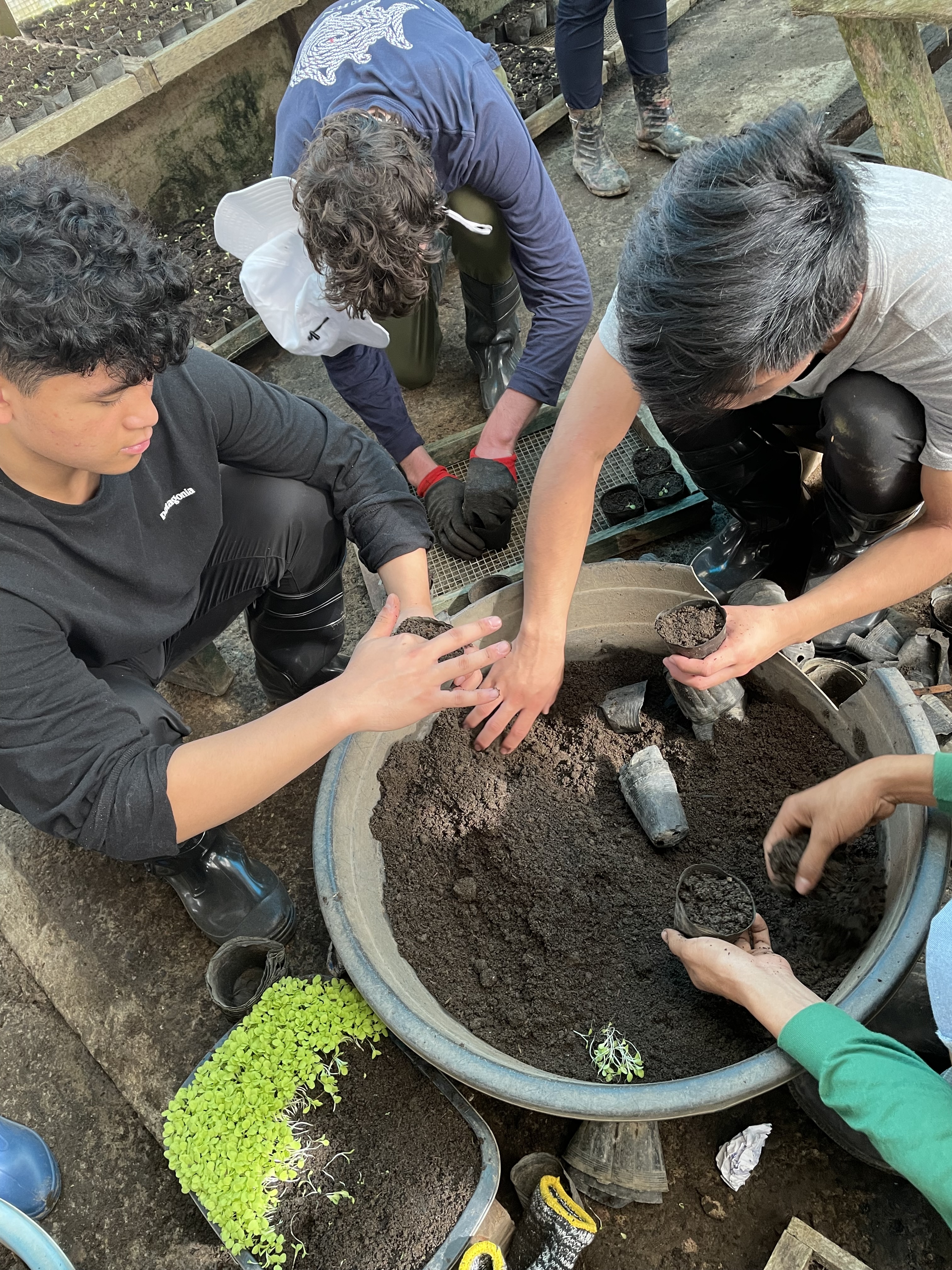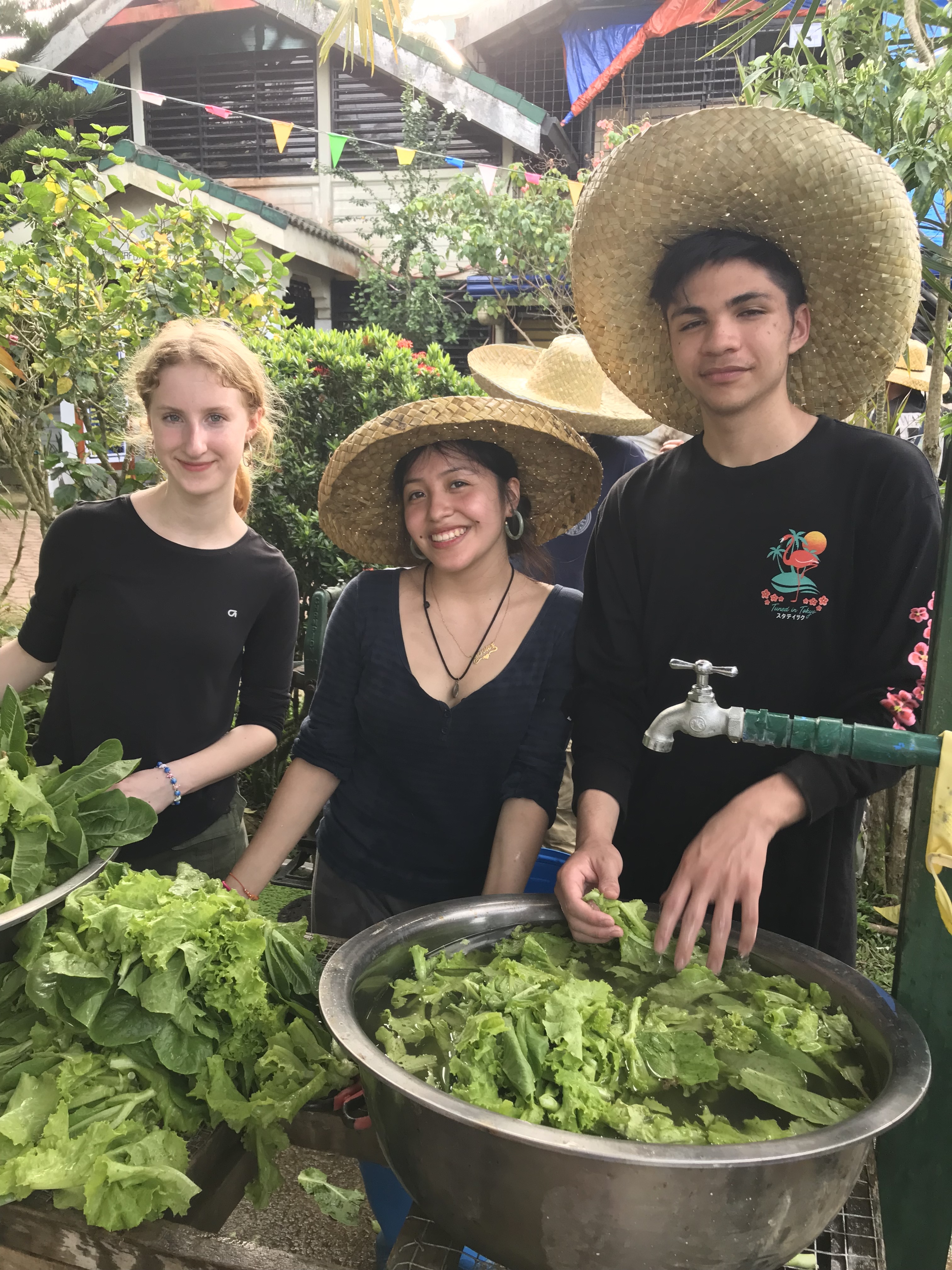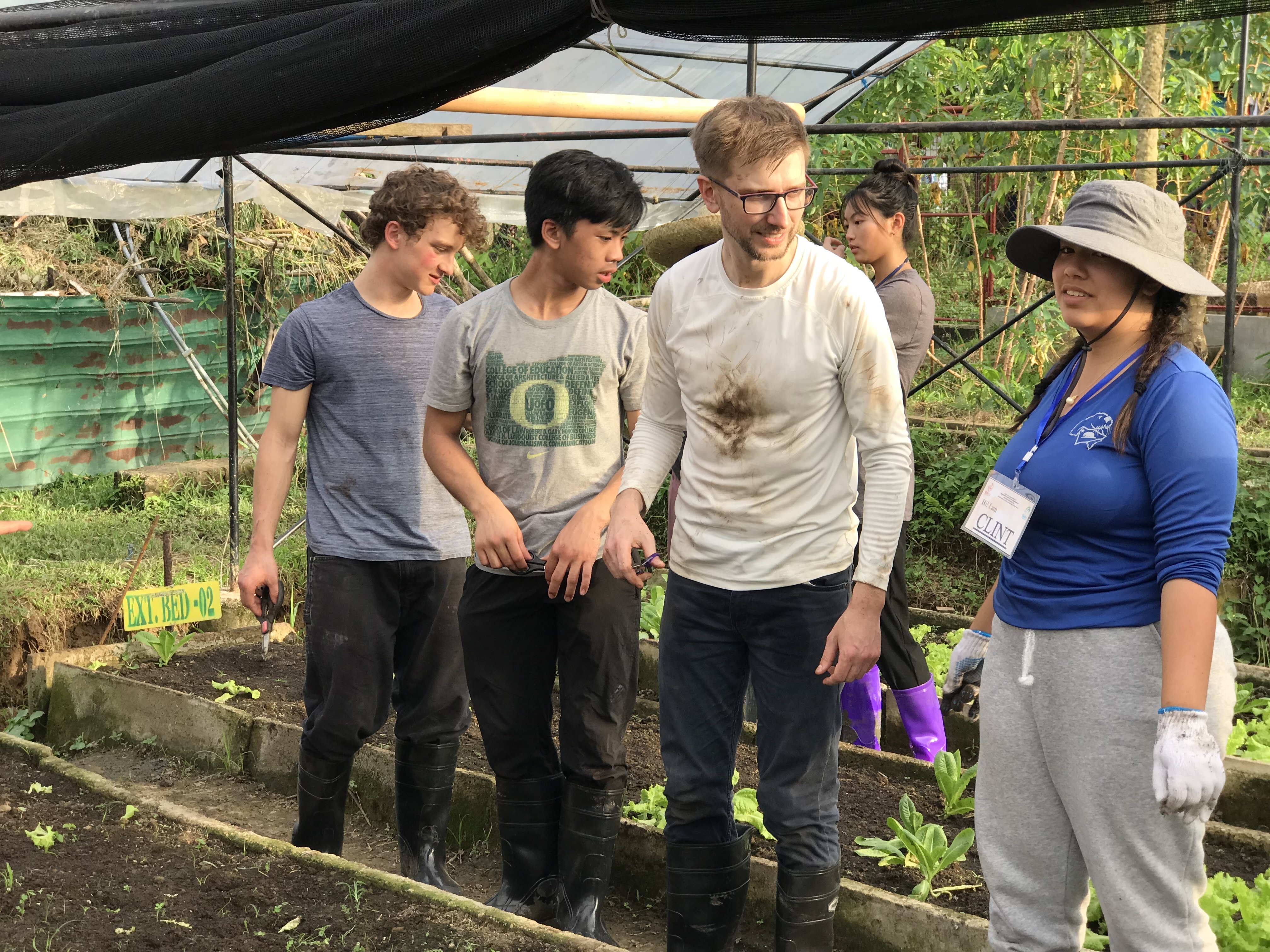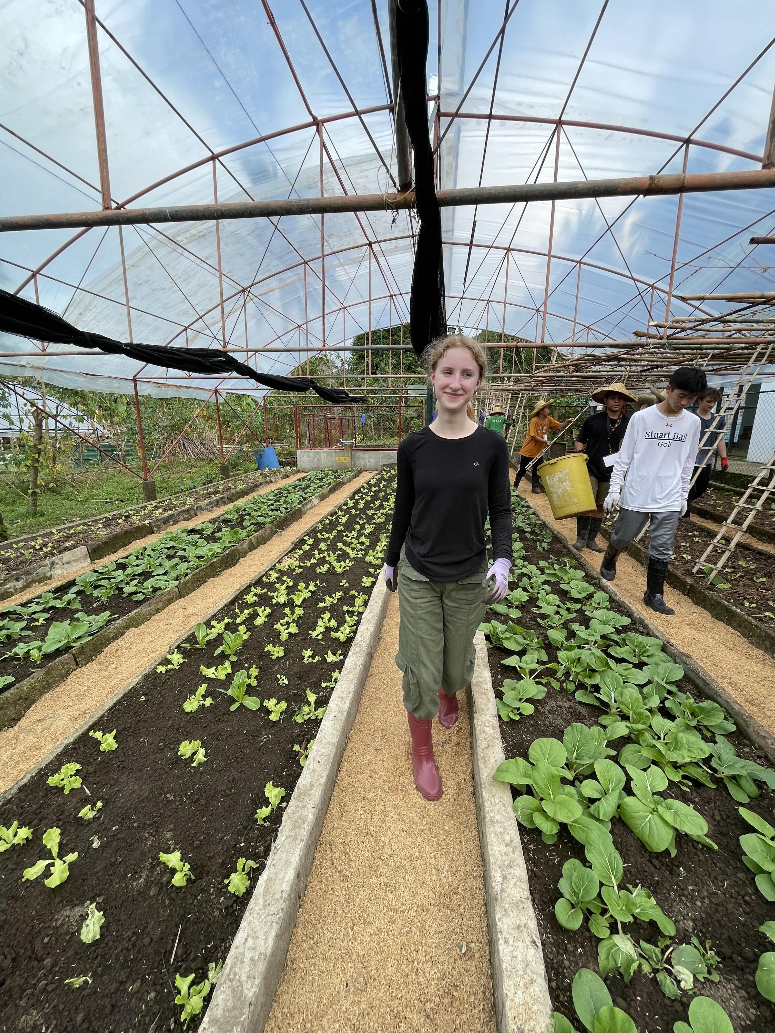 After our snack and break, we walked into the nearby village. There, we connected with local kids and observed the ways of life in Catarman. During our visit, we went to the sea, which we had seen earlier during the property tour. While in the village, some of the boys in our group caught a group of local boys playing basketball and eagerly joined in. This led to a spontaneous basketball game that demonstrated the universality of some experiences. After returning from the village, we observed Ash Wednesday by eating vegetable lumpia and other meatless dishes. Shortly after, we began our service work. We divided into multiple groups and went through each process of horticulture, specifically growing lettuce. It was hard, manual labor, something that most of us had not experienced before. Despite the uncomfortable heat and labor, we pushed ourselves to our limits and helped put food on the table for the community. It was a fulfilling experience to give back to a community that had already given us so much.