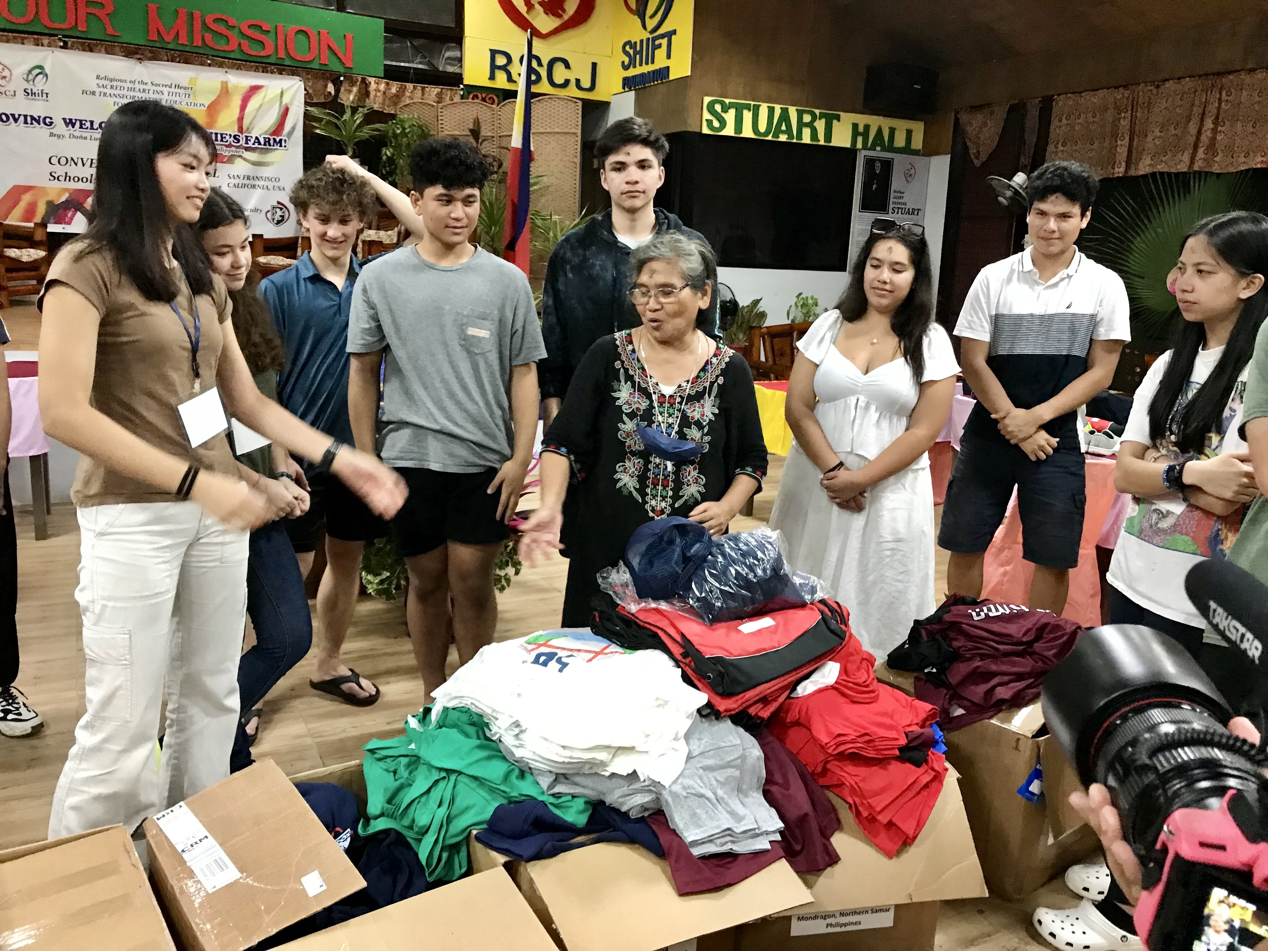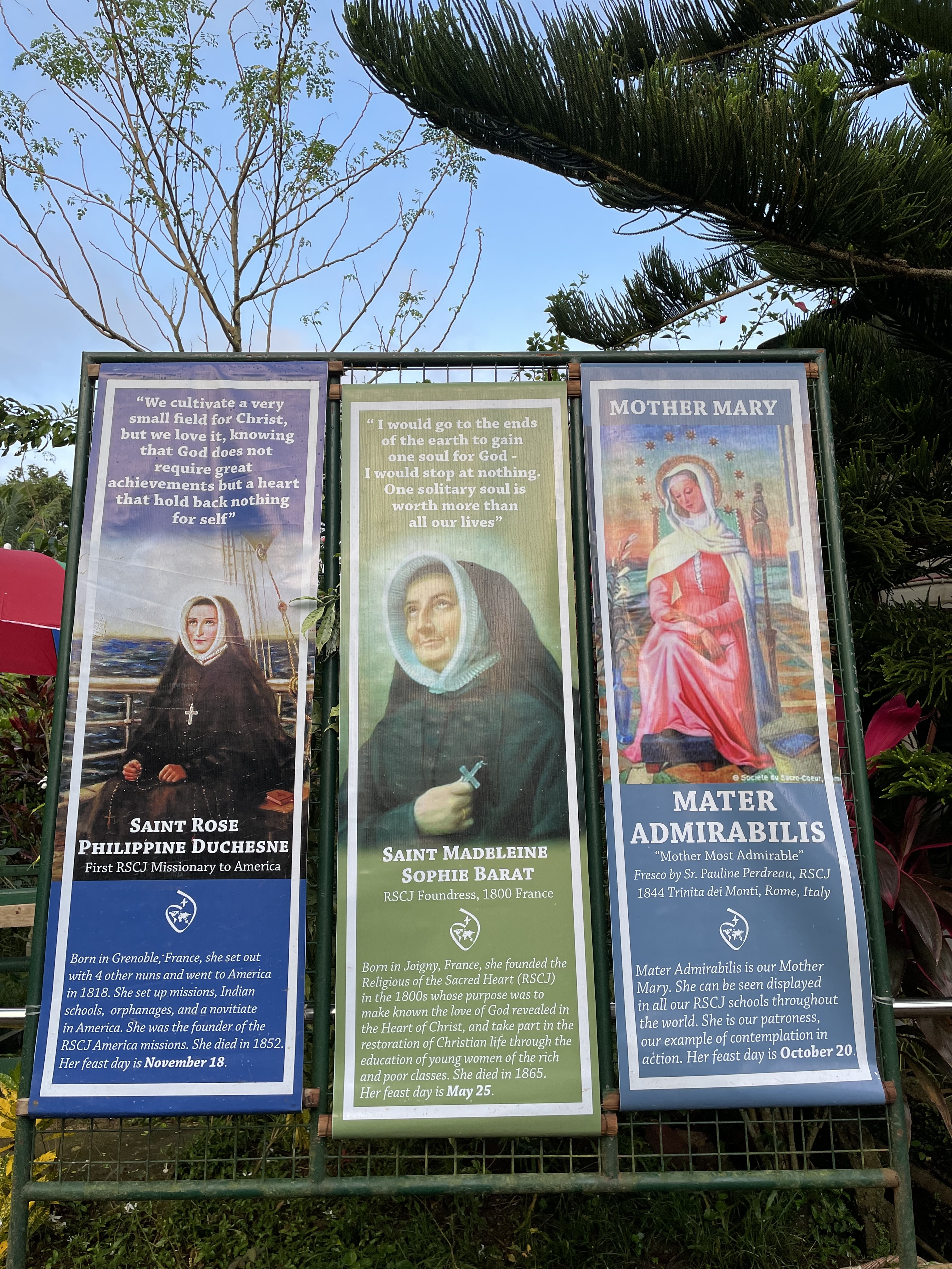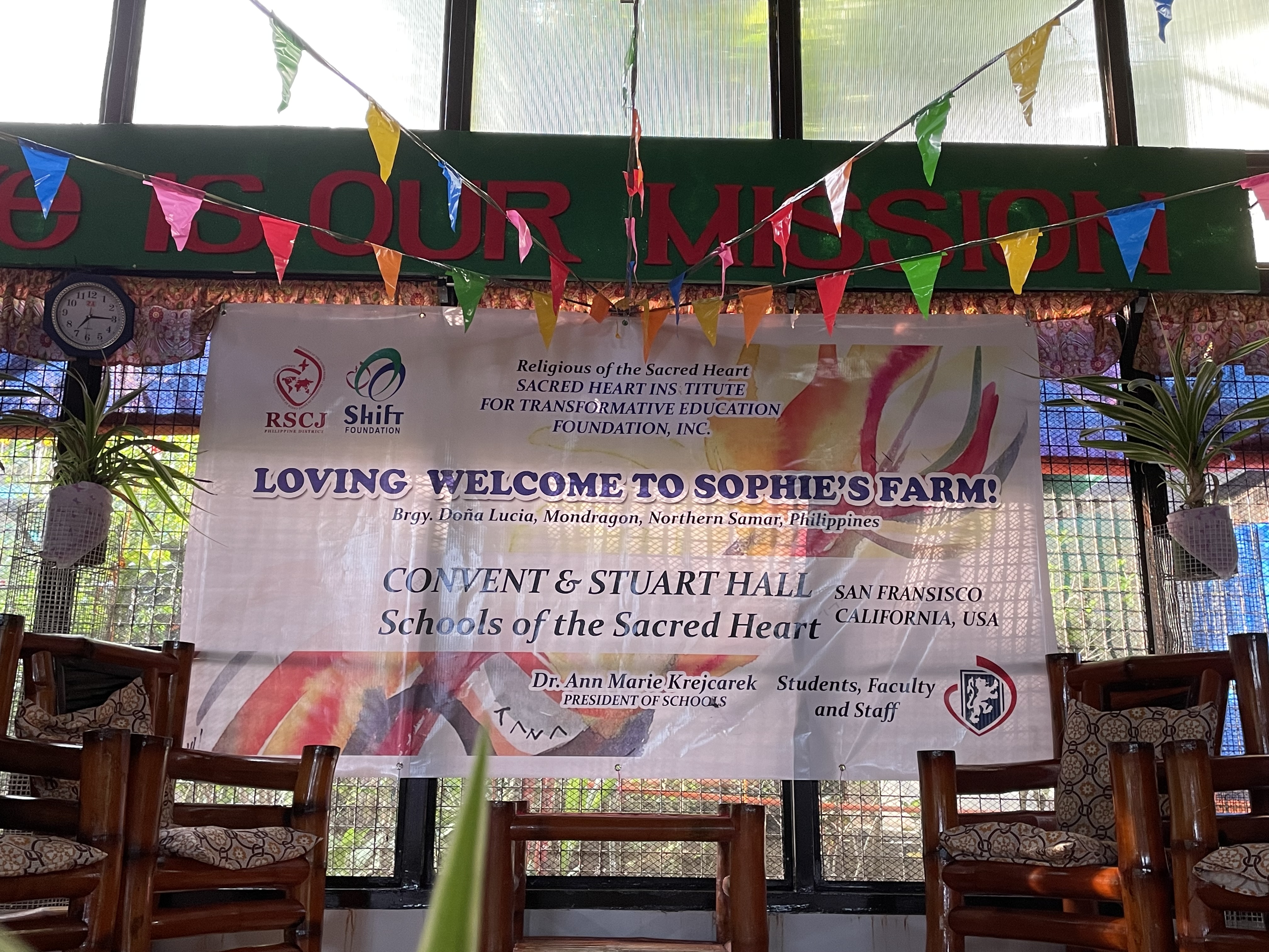 We woke up early today to the sounds of the farm dogs barking and the rooster crowing. For breakfast, we had traditional bangus and rice, as well as pancakes, cereal, and toast. After our hearty meal, we attended a presentation on the connections between Sophie’s Farm and the RSCJ. Then, we went on a tour of the farm grounds and prepared for the work we would be doing later. Upon returning to the center, we enjoyed a delicious meal of ginataang, a coconut milk soup with saba bananas and taros, and deep-fried ube on the side.