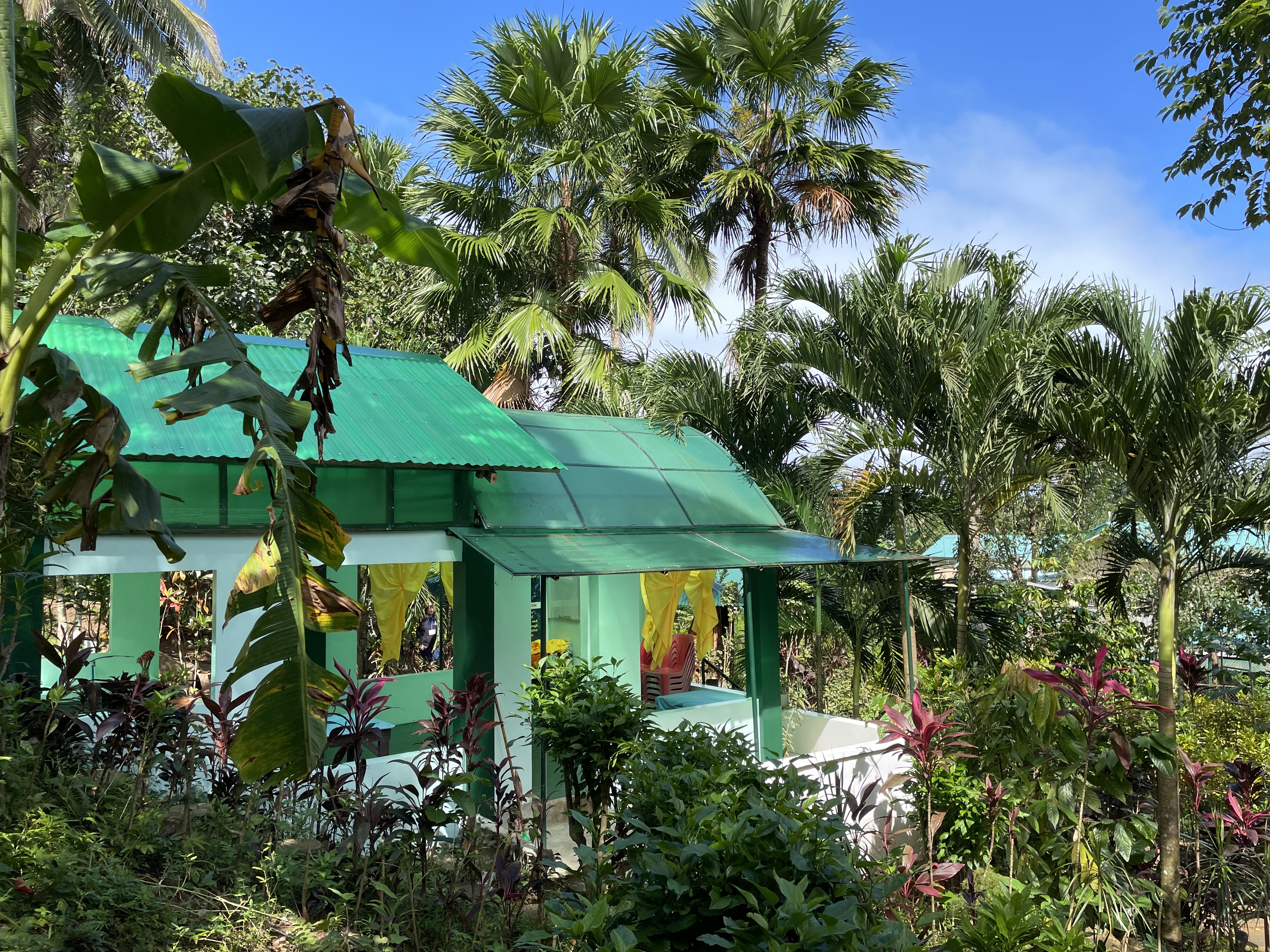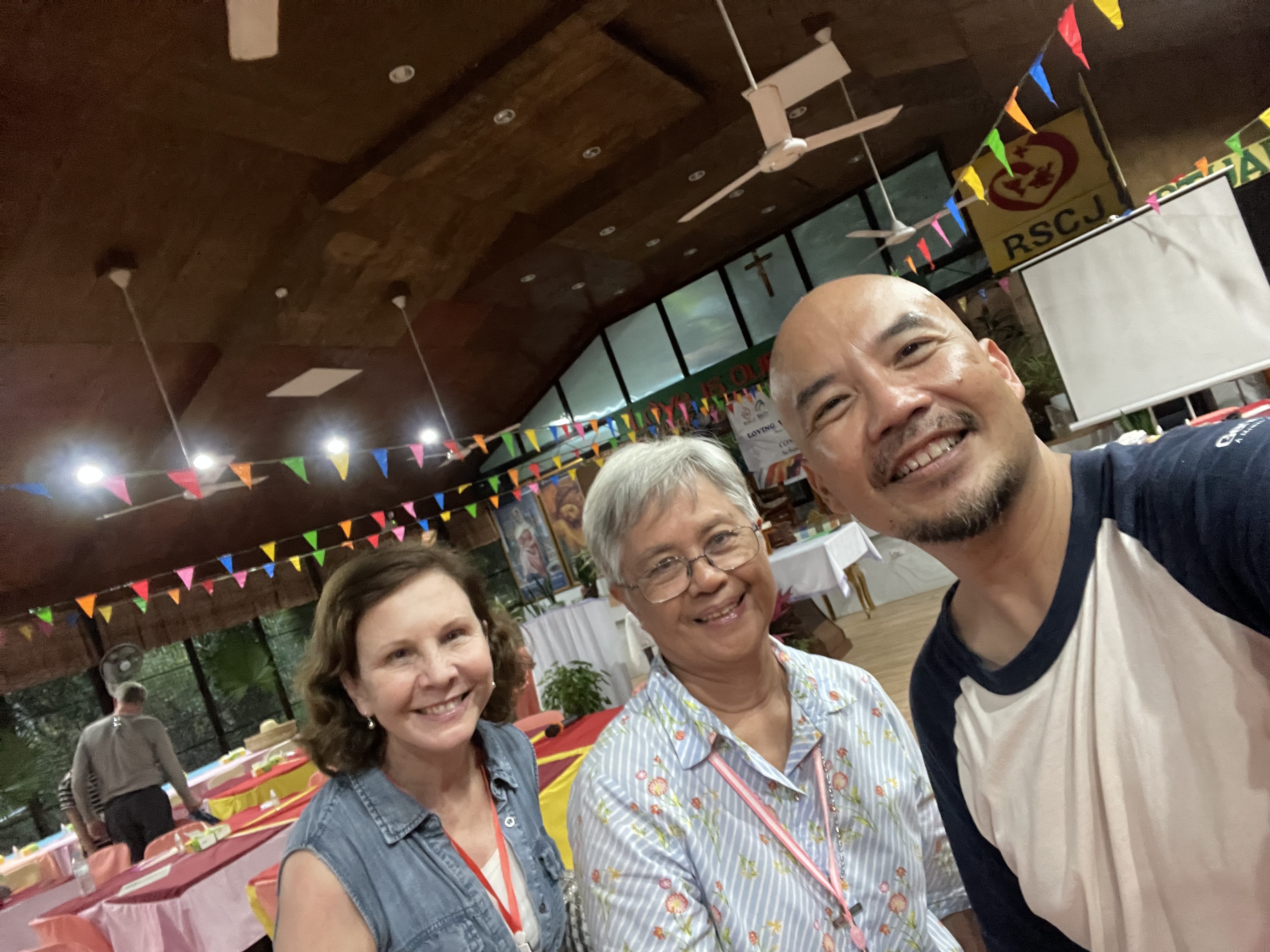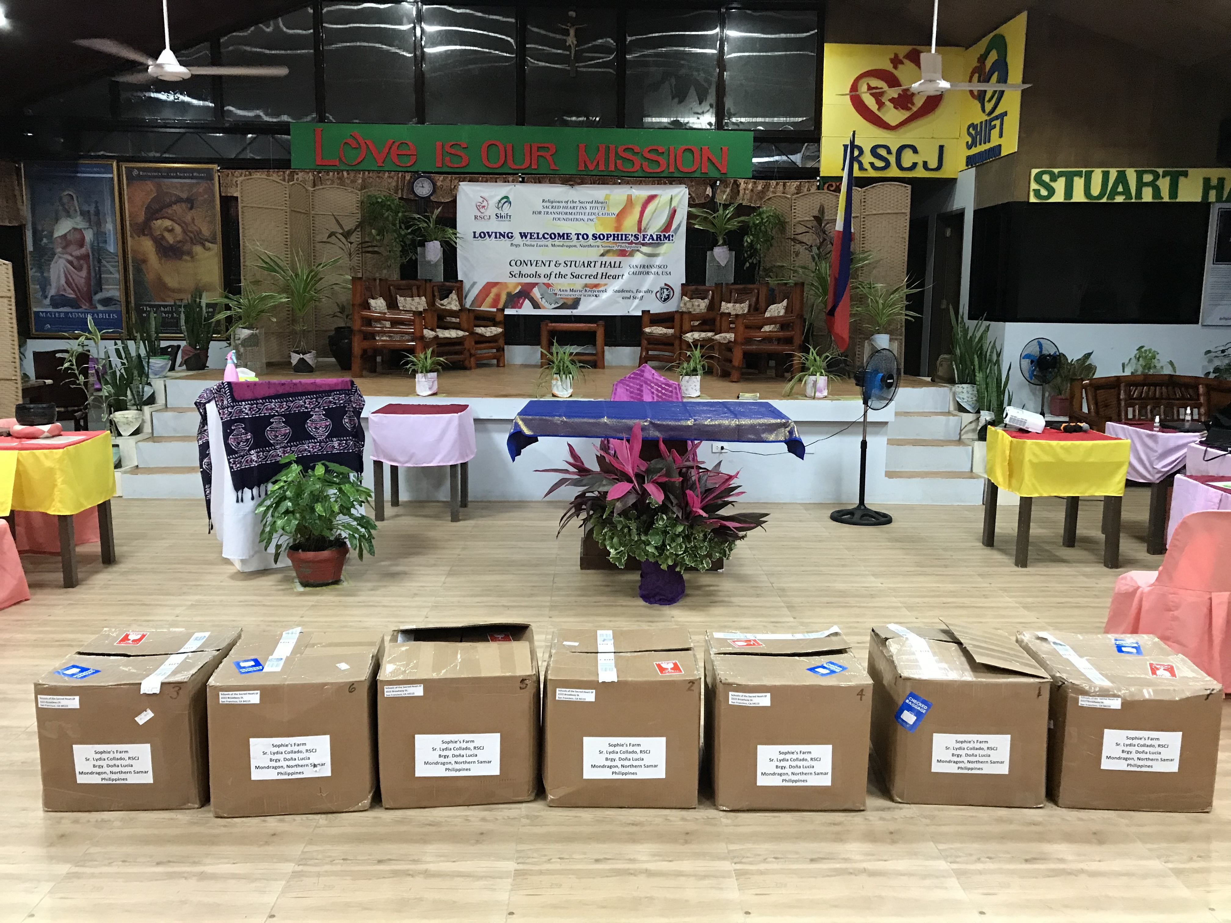 We woke up early today to the sounds of the farm dogs barking and the rooster crowing. For breakfast, we had traditional bangus and rice, as well as pancakes, cereal, and toast. After our hearty meal, we attended a presentation on the connections between Sophie’s Farm and the RSCJ. Then, we went on a tour of the farm grounds and prepared for the work we would be doing later. Upon returning to the center, we enjoyed a delicious meal of ginataang, a coconut milk soup with saba bananas and taros, and deep-fried ube on the side.