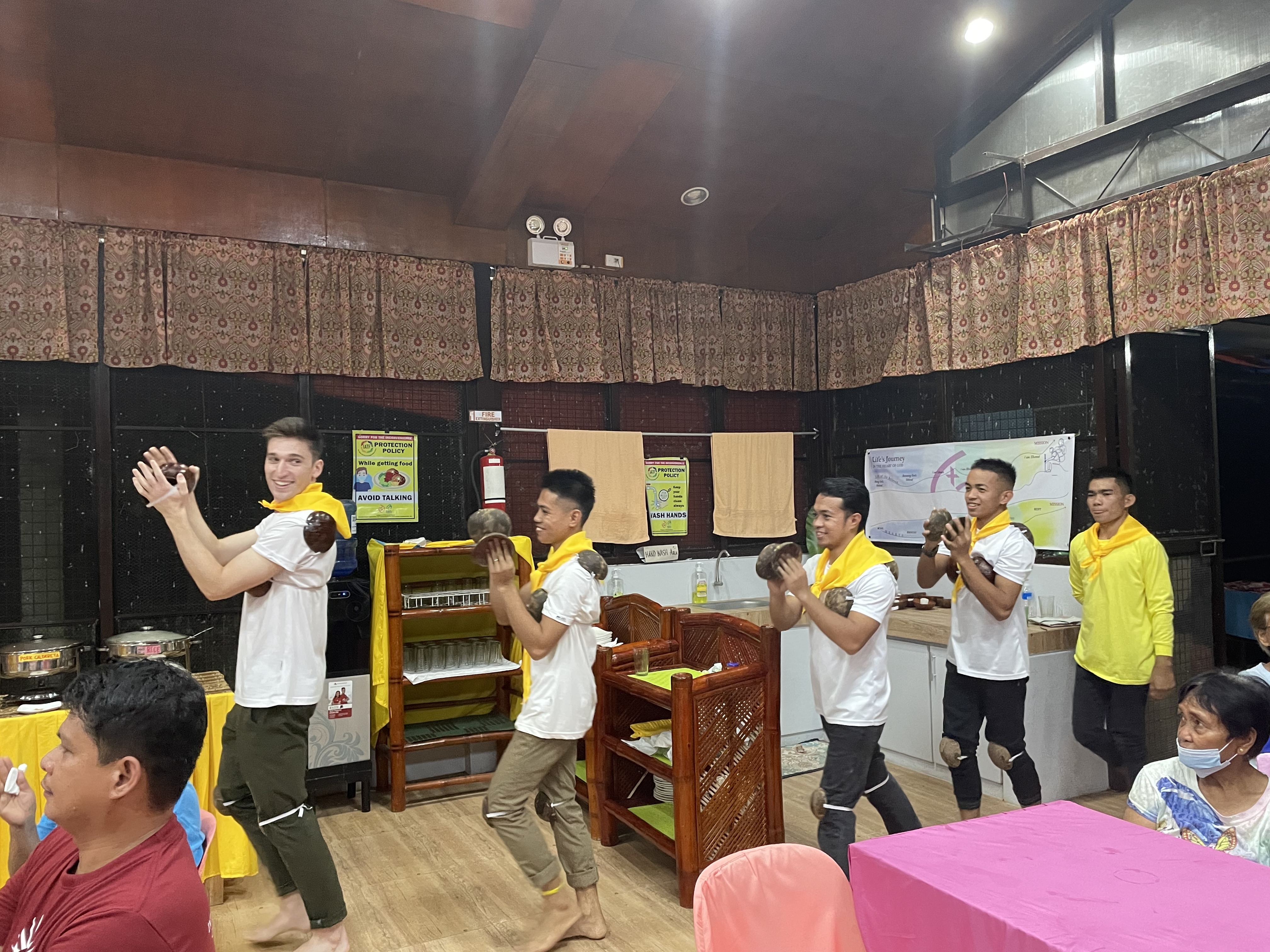 In typical Sophie’s Farm tradition, participants were officially welcomed during Mass at day’s end. The liturgy was followed by a celebratory dinner and Barrio Fiesta, a cultural presentation of indigenous dances and songs. Whereas Sr. Mercy surprised us with a Ugandan liturgical dance two weeks ago, this time, it was Sr. Digna who wowed us with her lithe negotiation of clacking bamboo poles in tinkling (apparently, she was a quasi-professional dancer in a previous life). Sam, who is proving to be quite the expert in traditional dances, leveled-up his performance of Da Coconut Nut with the more complicated turns of Maglalatik.