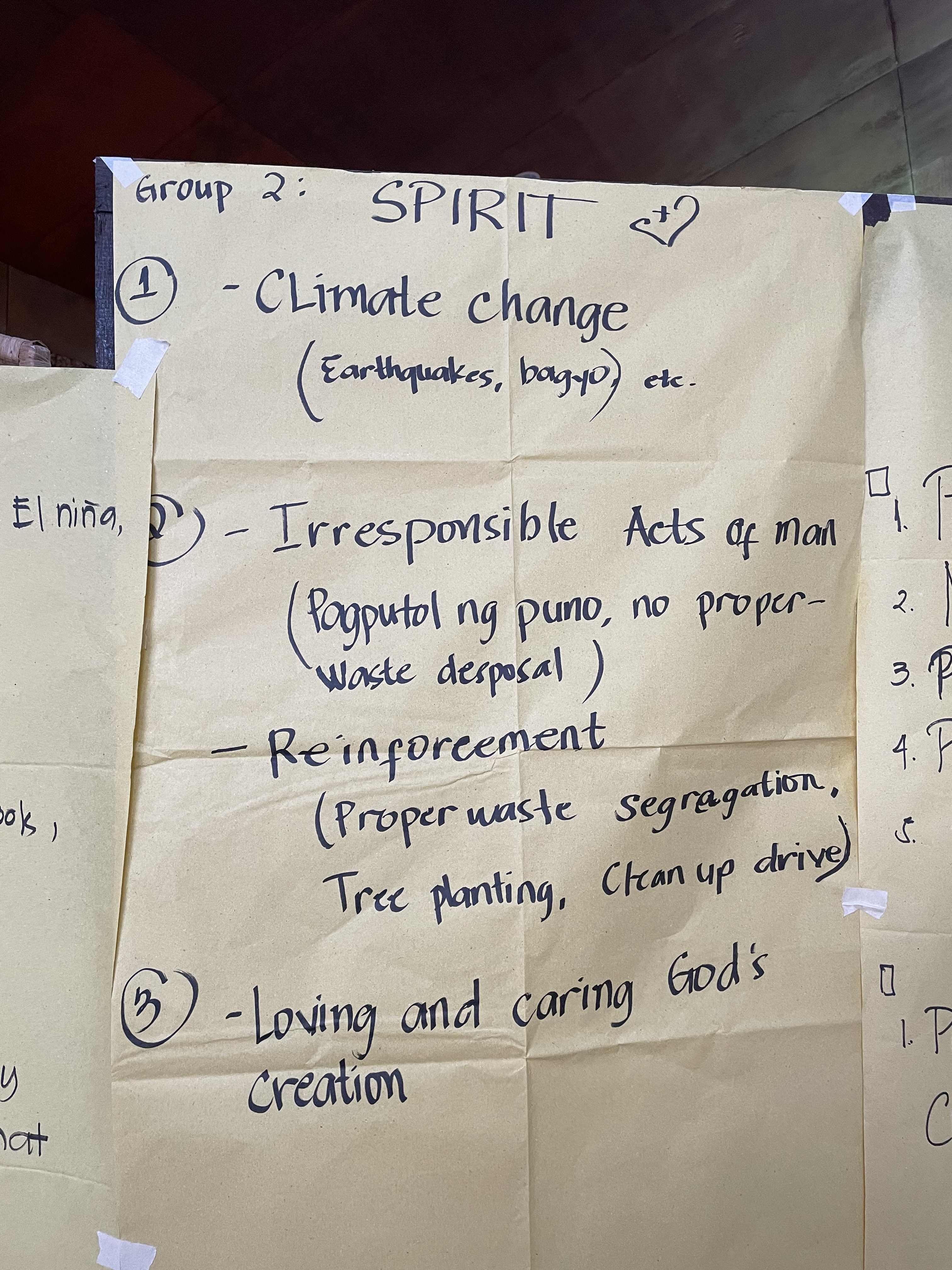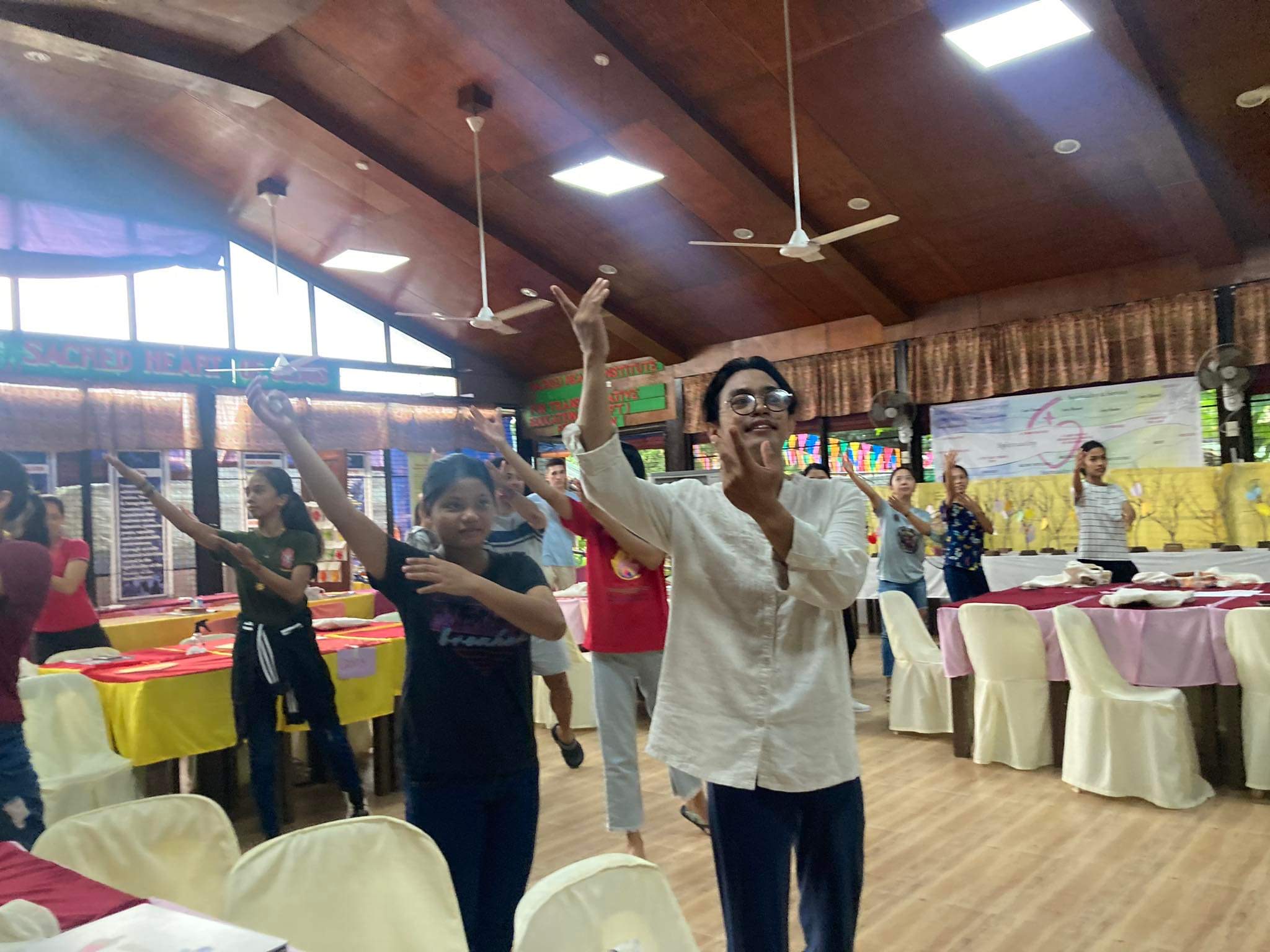 A few minutes before 6 a.m., a gentle melody called us to gather along Sophie’s Pathway. Facilitated by staff member and animator extraordinaire, Malou Ybanez, we learned to pray through movement and breath. After 45 minutes of individual practice, we gently found our way to the Village “clubhouse” for breakfast and small group sharing. Maupay nga aga!