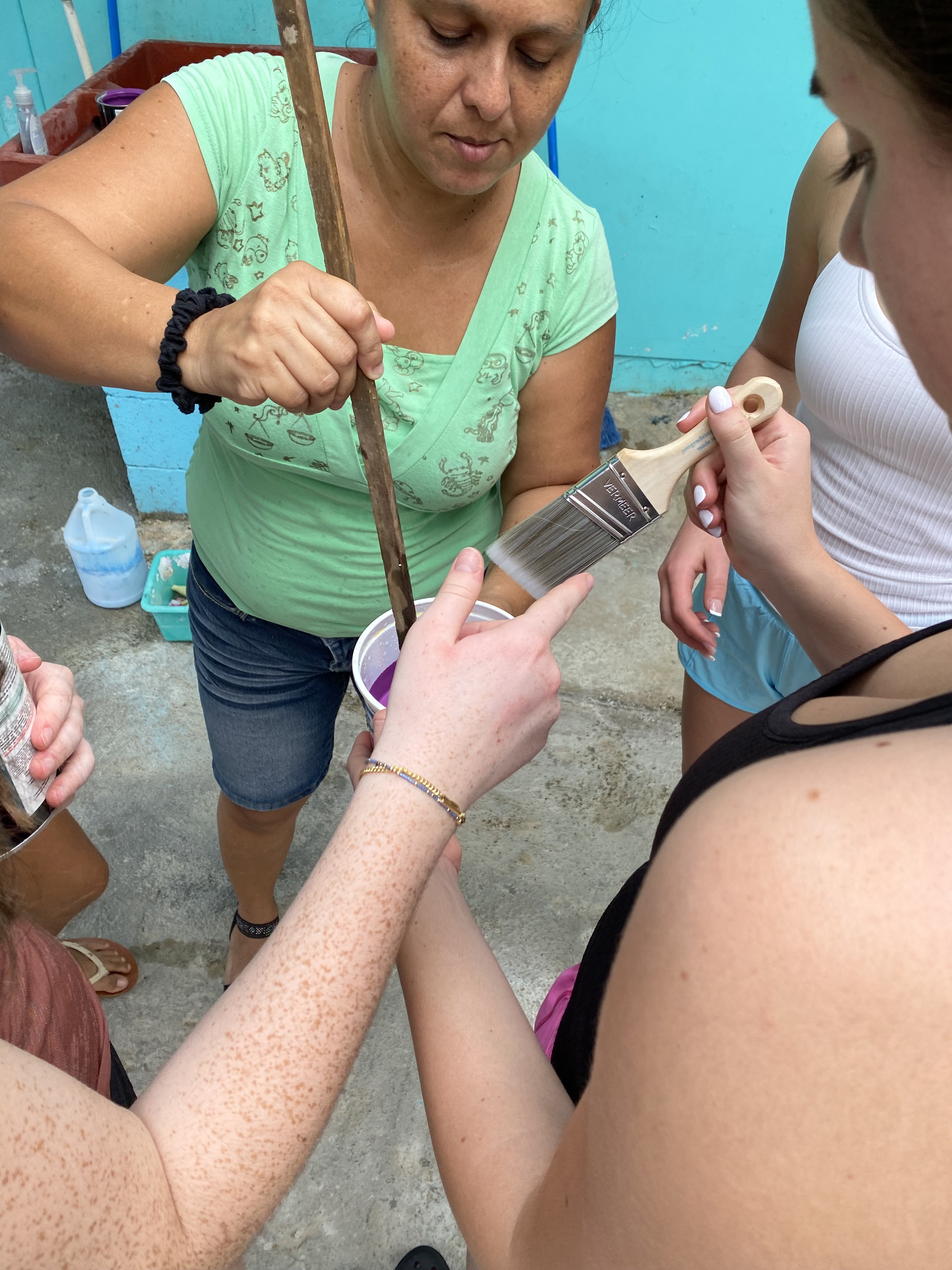 We began the day by heading down to the dining room for breakfast which consisted of rice, beans, eggs, potatoes, french toast, and fresh pineapple. After the meal, we made our way into the common room, where Dr. Krejcarek led us through an exciting new song called “Chi Chi Ri Wa Wa”. Next, we split up into our day groups and headed to our respective activities. My group and I went to a local school in a town called El Silencio, and painted a new hopscotch game for the kids to enjoy. The activity was fun and exciting, but came with many challenges along the way.