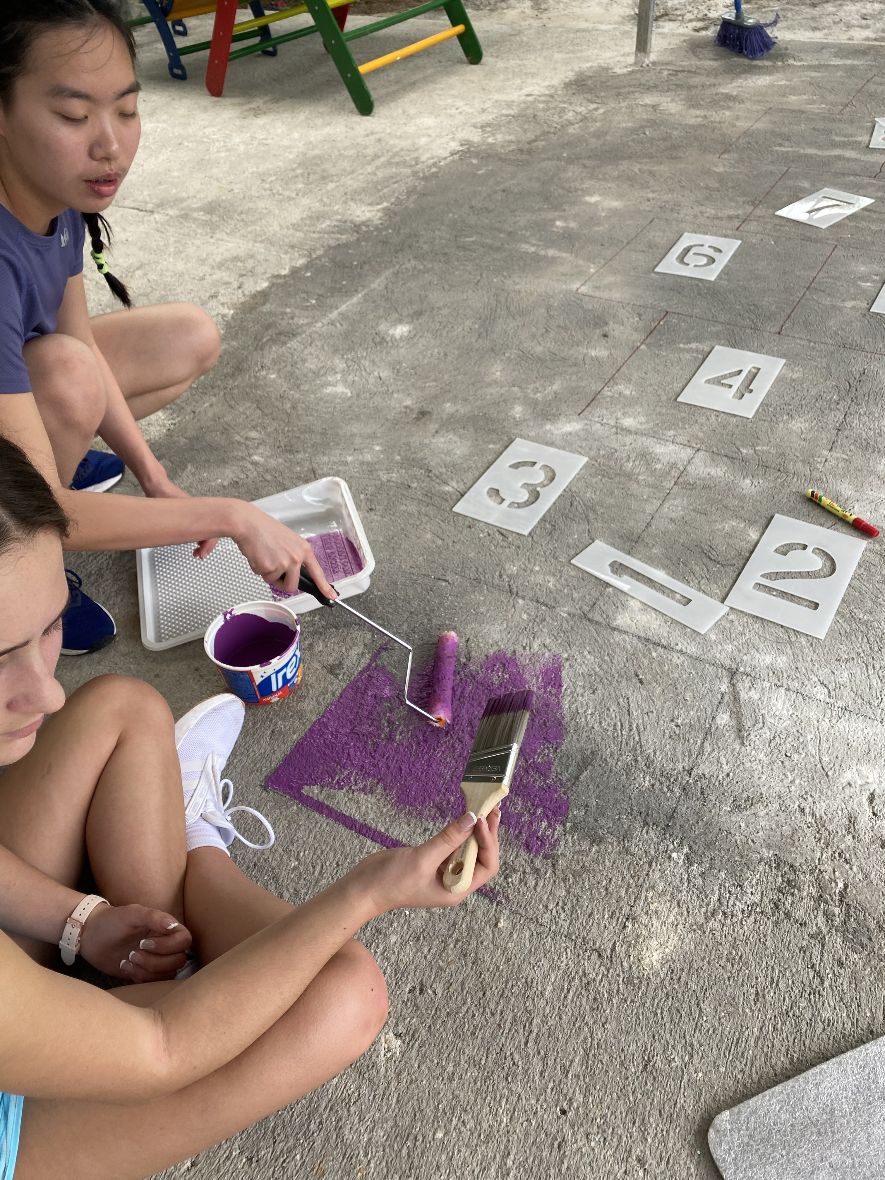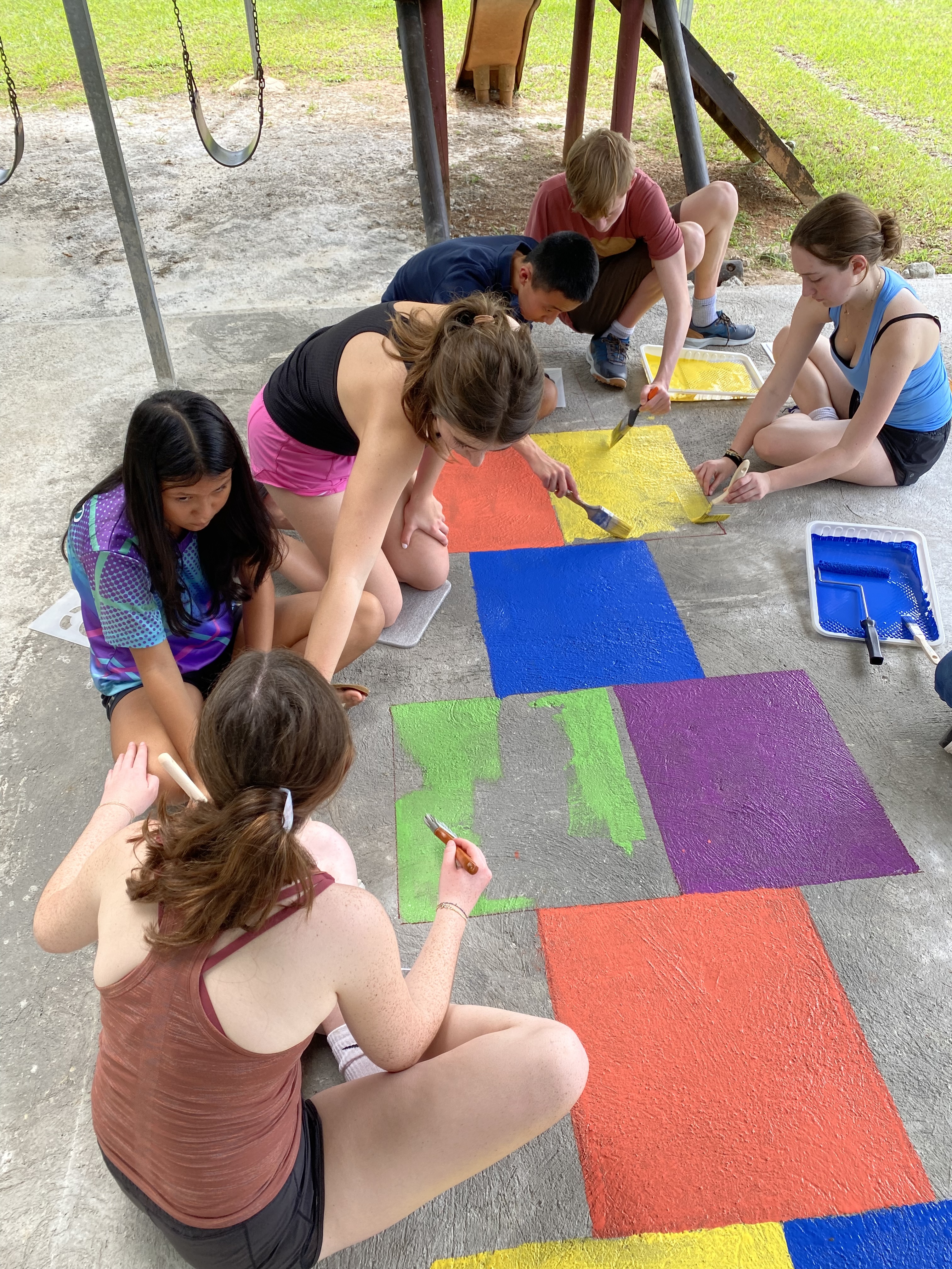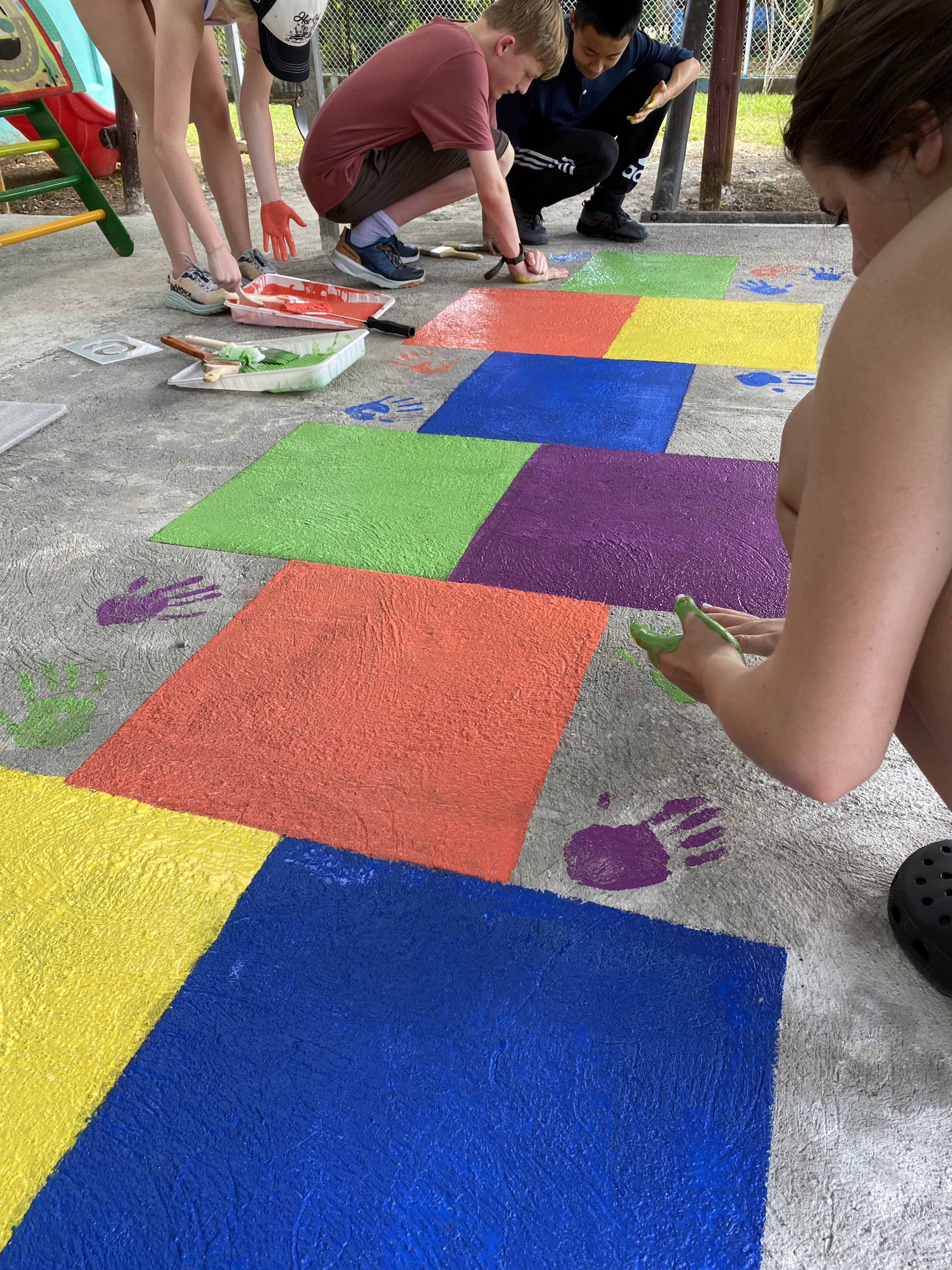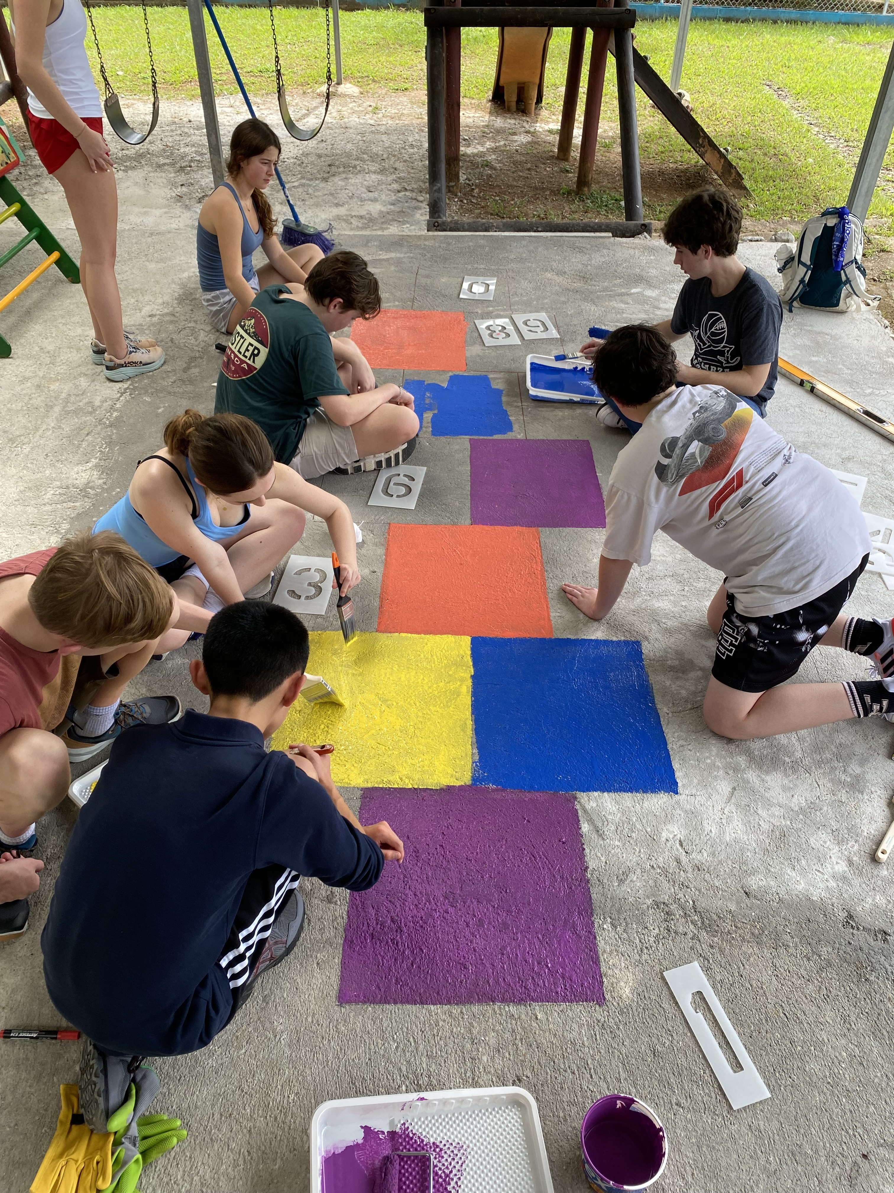 Our art teacher Ms. Martin, who assisted us during this project, says, “the service work today at El Silencio was meaningful and powerful. It was incredible to see students jump right in and connect with the purpose of the project. We were able to execute a hopscotch painting that will be utilized by primary school students. I am grateful that we all had this experience to give back in a lasting and meaningful way.”