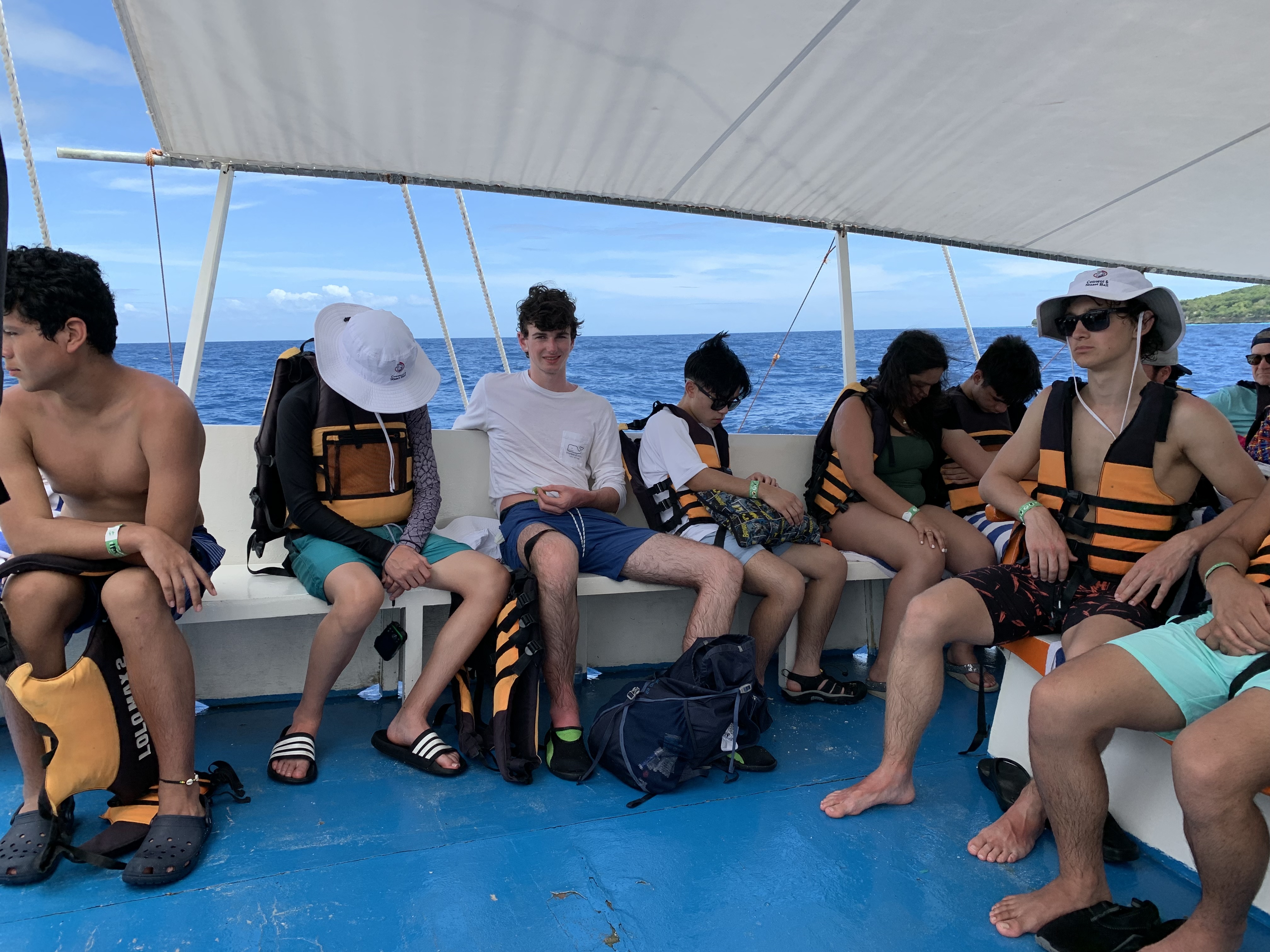 We woke up at 4:30 in the morning and left the Blue Water Hotel at 5:00. We had an assortment of breads for breakfast which we ate during our three hour long bus ride before we arrived at our first activity: canyoneering. Upon arrival, we were given life vests and helmets and then took a truck to the top of the mountain.