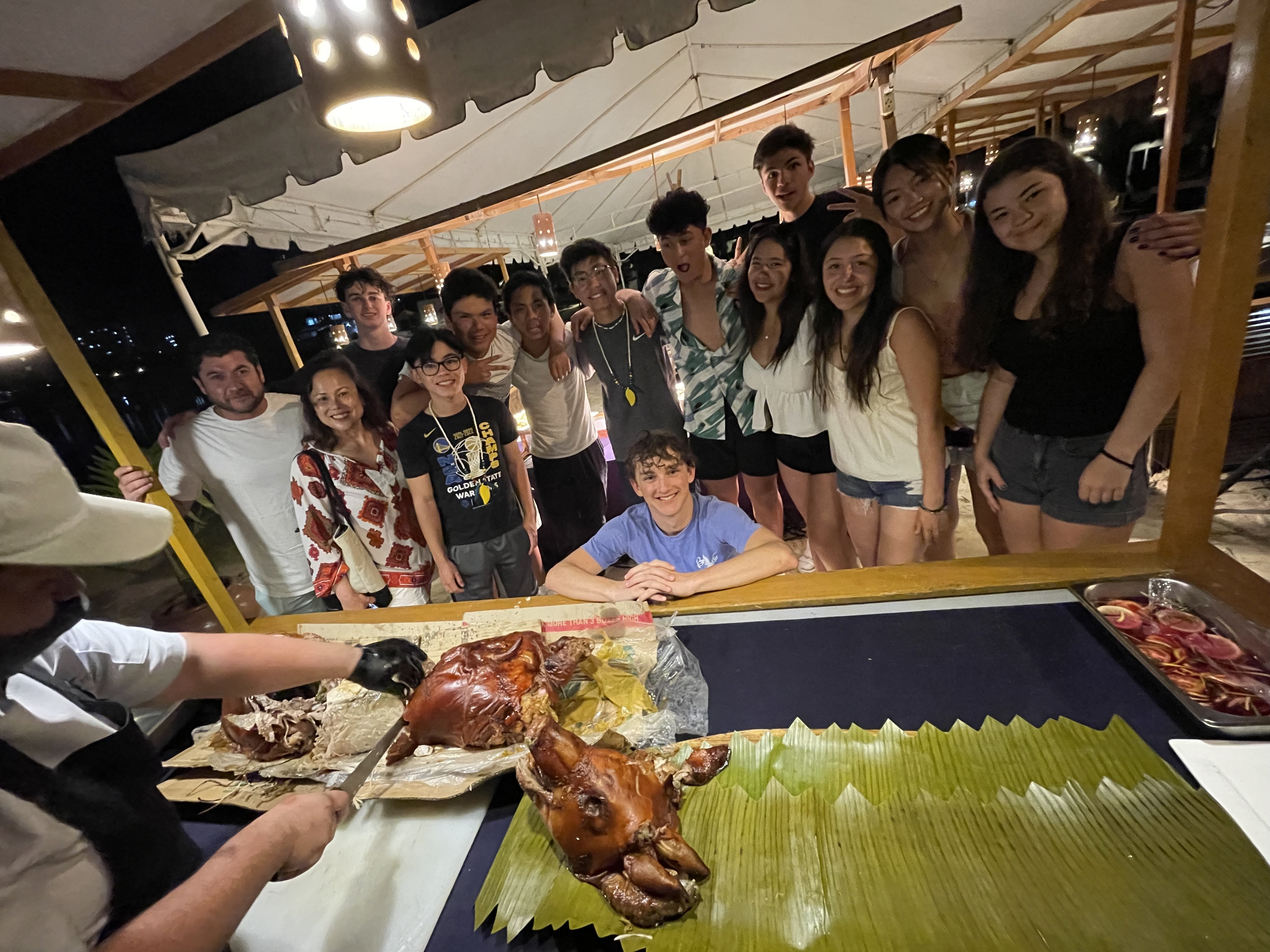 Our plane had a rough landing in Samar, but we eventually made our way to Sophie’s farm with a military truck escort. The locals were welcoming and friendly upon our arrival. It was nice to interact with them and learn more about their culture. For dinner, we enjoyed lechon, tinola, and pansit, while seated at tables with other students from different high schools in the Philippines.