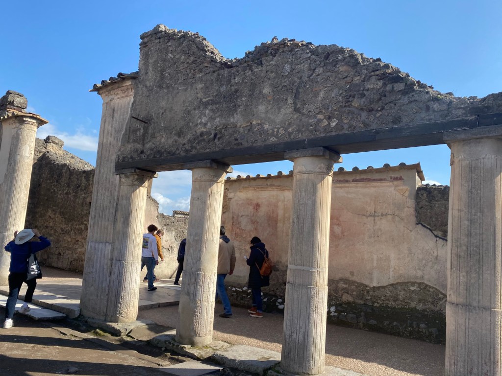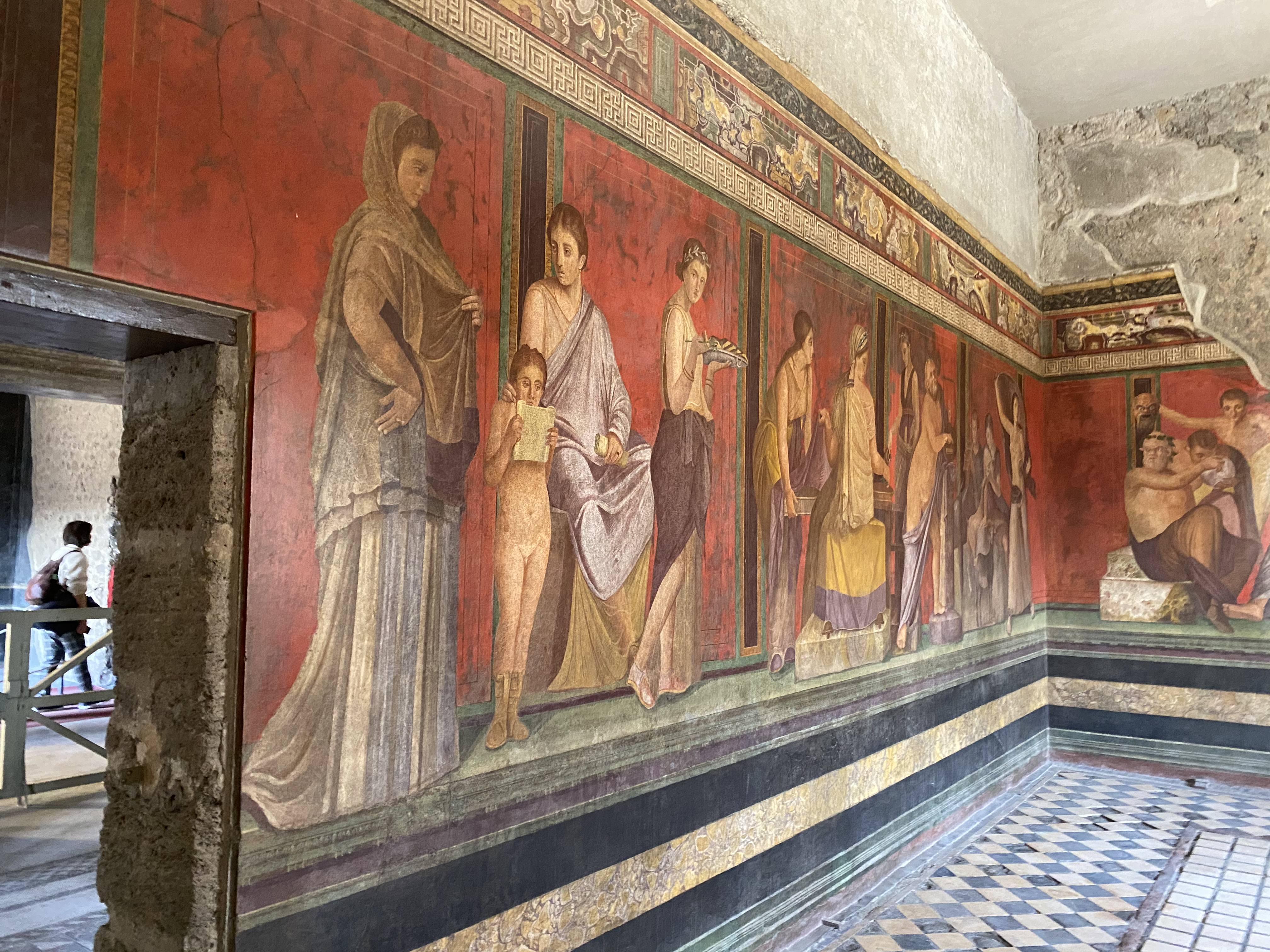I was amazed to see the frescos in the Pompeii villas. Seeing the frescos pop proved to me how advanced their lifestyle was. I was really impressed because Pompeiians took the time to show off their culture through art. Seeing the frescos and their beautiful colors reminded me that the story of Pompeii and Mount Vesuvius was real, and it gives me a foundation to appreciate antiquity.