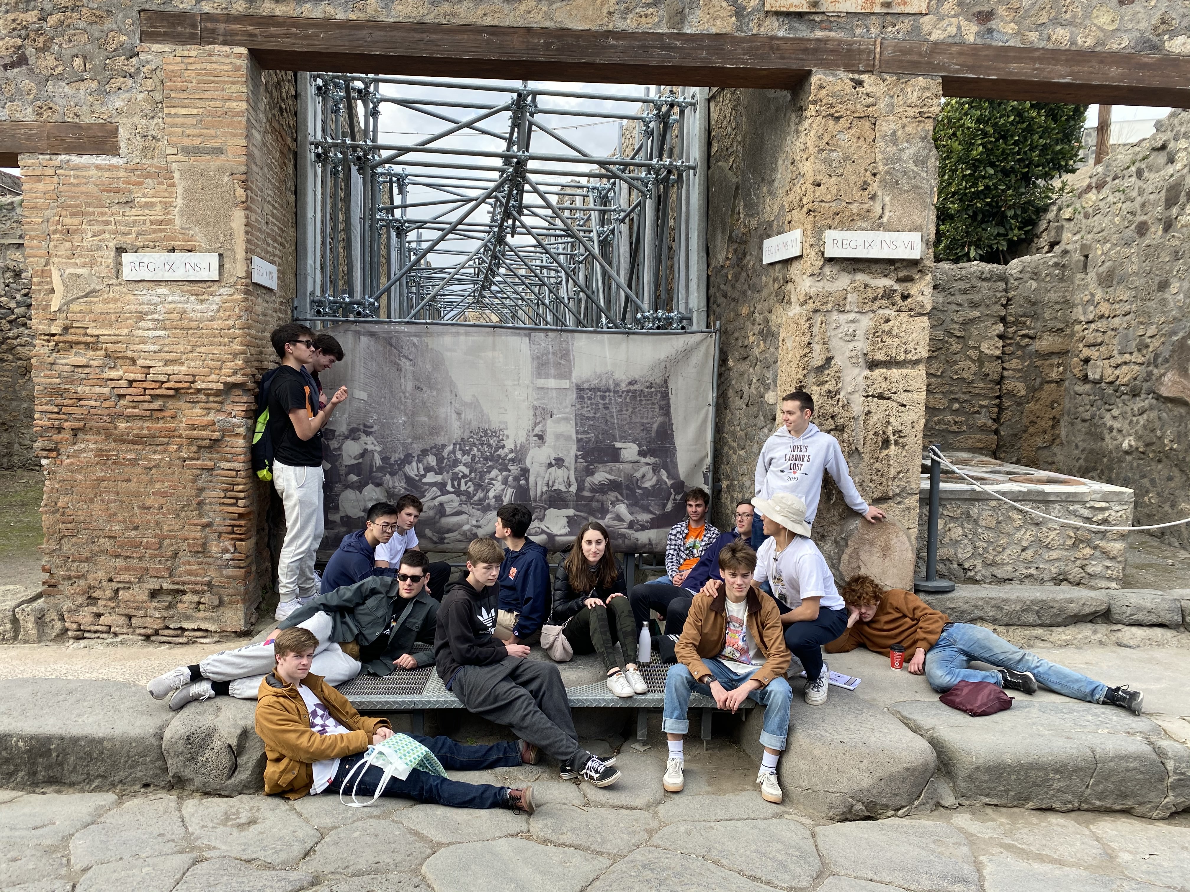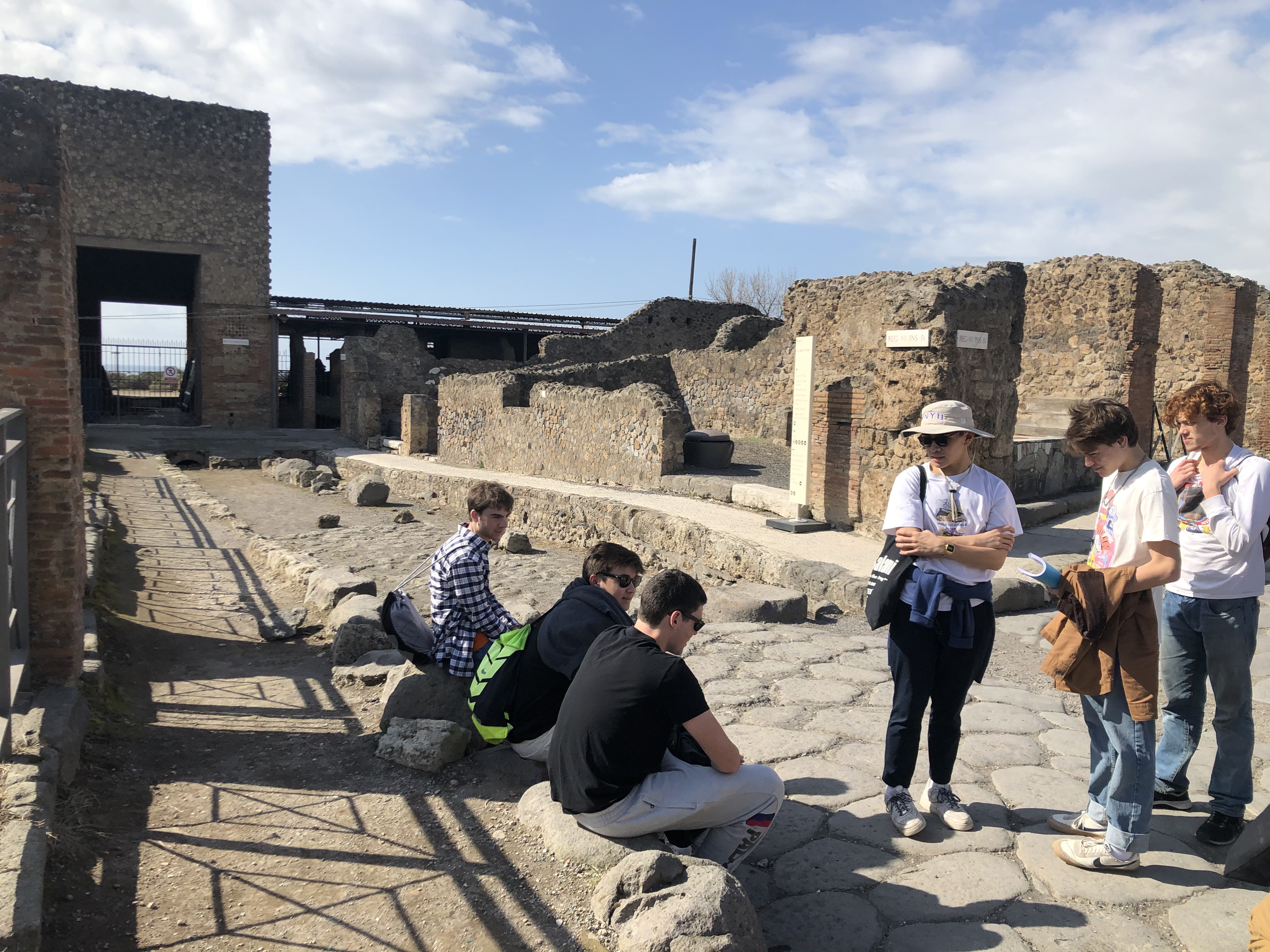 Students visited the ancient ruins of Pompeii today. They explored the ruins throughout the city, sang in Latin and viewed the preserved frescos.